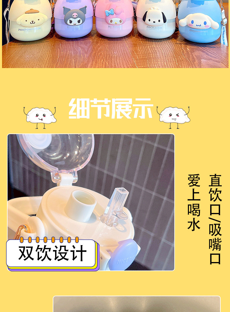 大容量ネット赤サンリオ保温カップ子供屋外斜めダブルドリンクストロー大腹カップ携帯手提げ水筒