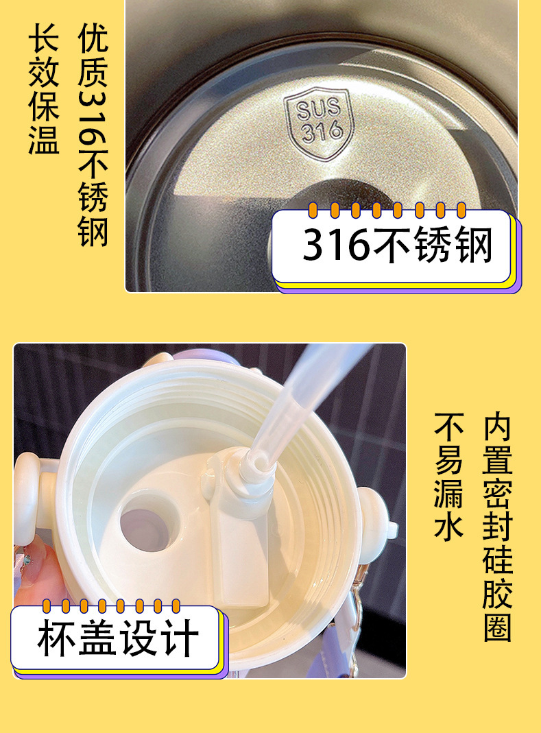 316 ステンレス鋼子供用ウォーターカップ魔法瓶カップ大容量卸売レディース高見えかわいい便利なストローカップ