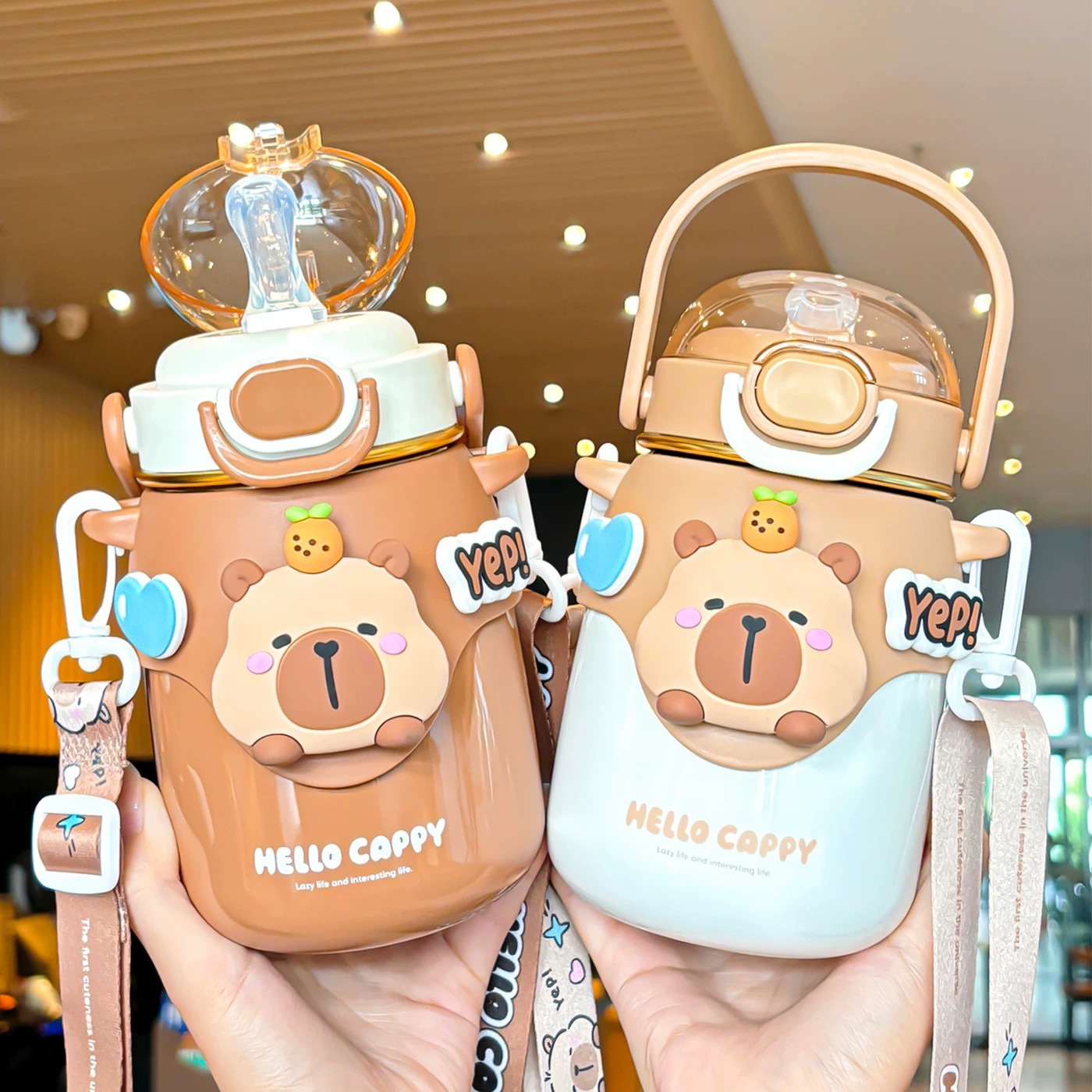 2025新款卡皮巴拉保温杯水杯女生高颜值大容量便捷卡通吸管杯子