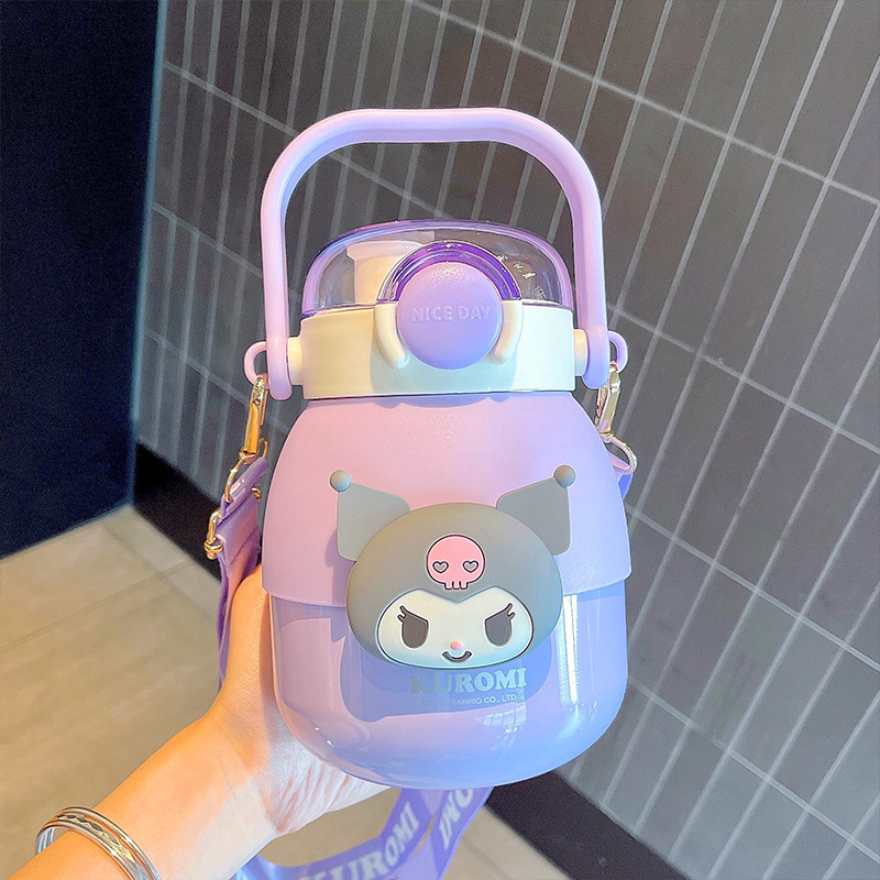 サンリオ正規品保温カップ女の子クロミ大容量水カップ調節可能ストラップ大きい耳犬かわいい学生