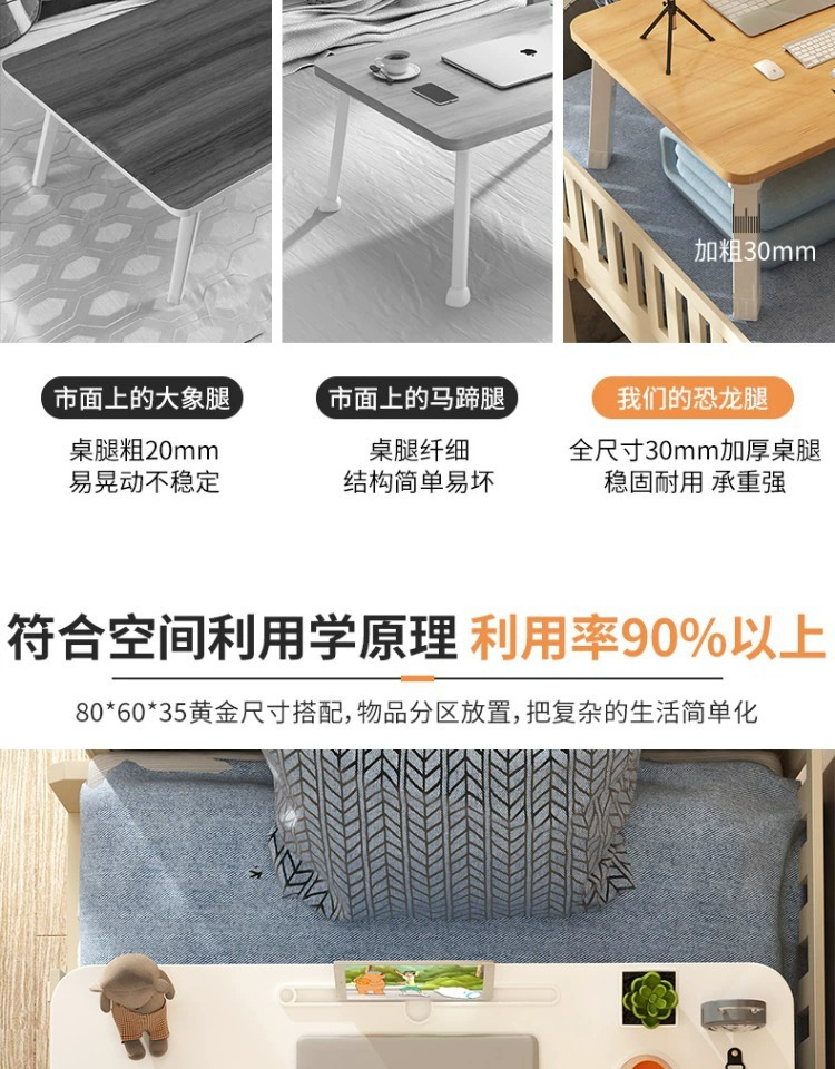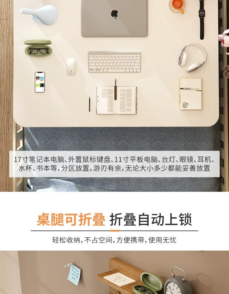 昇降式ベッドテーブル、折りたたみテーブル、寮デスク、学生コンピュータテーブル、二段学習テーブル、ホームテーブル