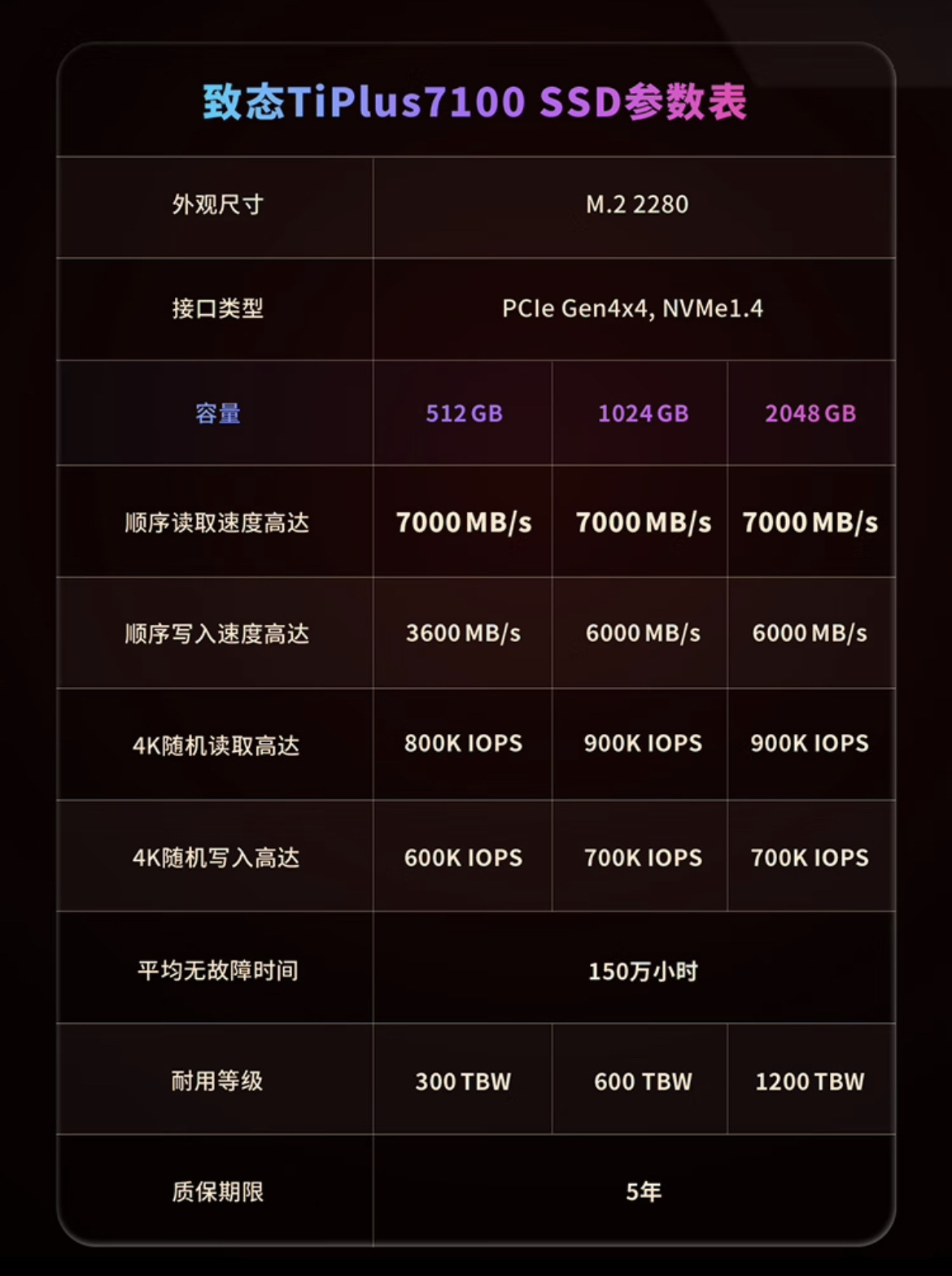 状態/ZhiTai tiplus 7100 512G 1T 2T 4T m.2 NVMe SSDソリッドステートドライブ