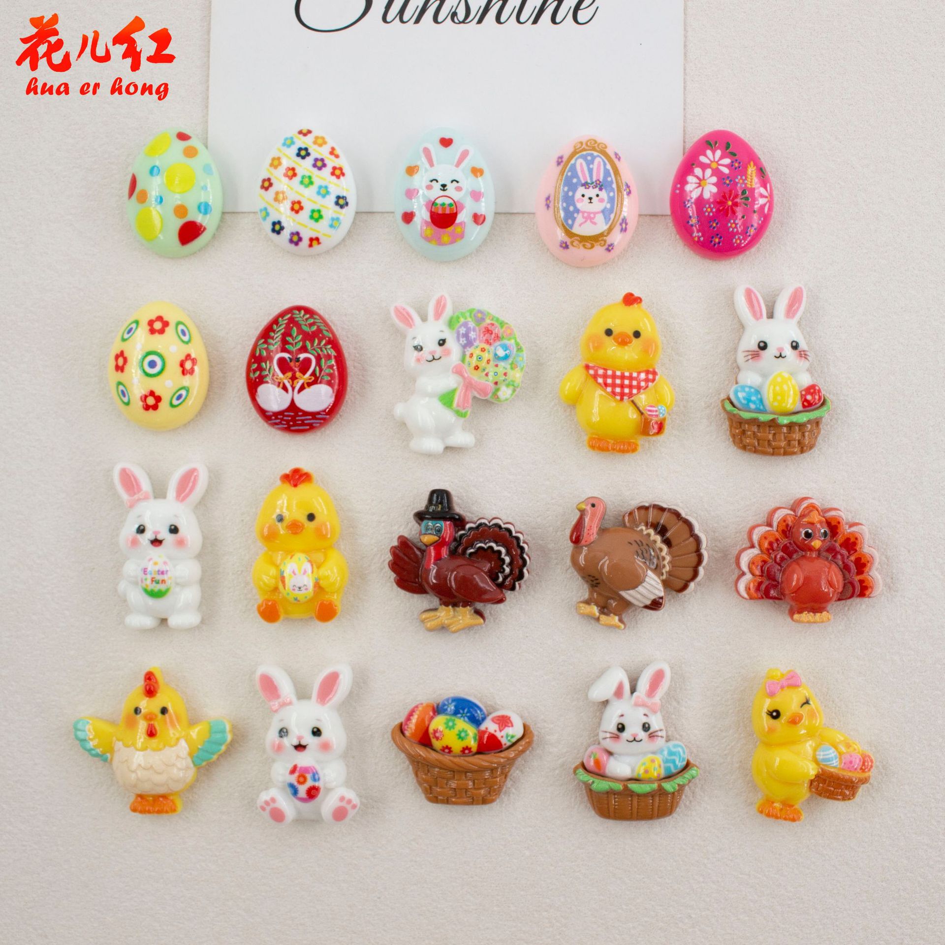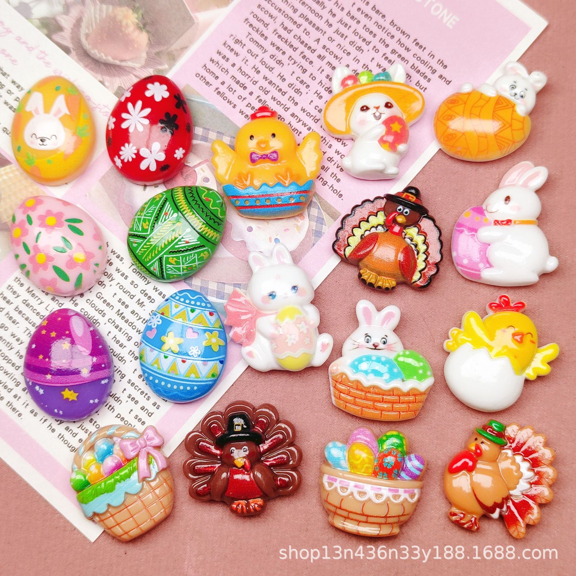 新款复合节卡通兔子小鸡火鸡彩蛋系列 跨境饰品配件diy奶油胶吊饰
