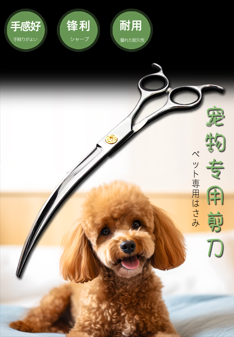 狗狗美容清洁,特殊功能剪(JI限大弯度)。 开合顺畅,上下弯通用。可用于狗狗全身部位,修剪效率高。 |