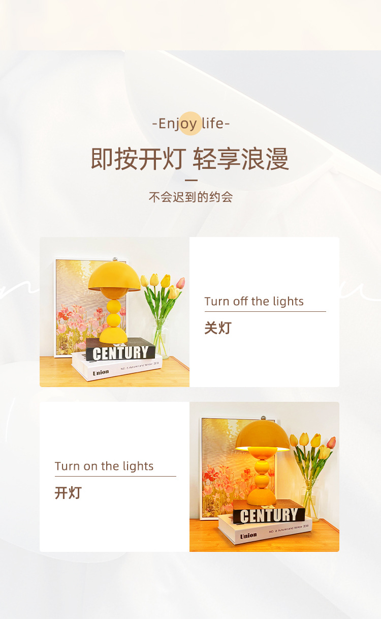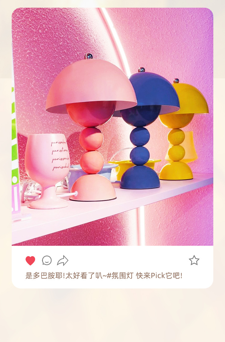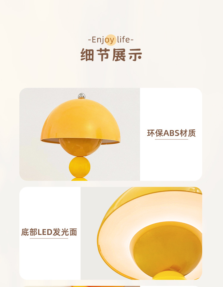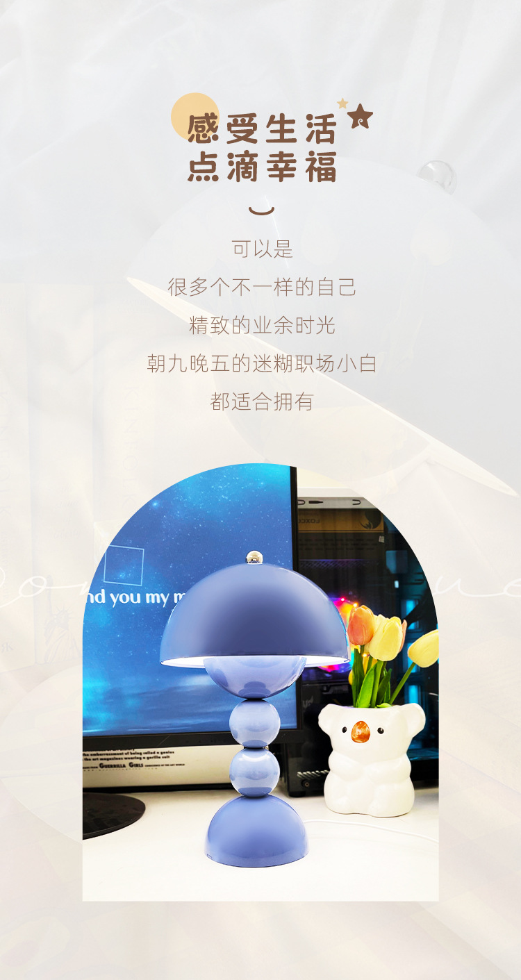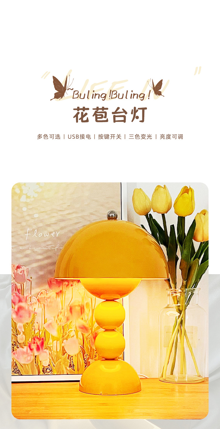 丹麦蘑菇花苞台灯卧室书桌复古ins风氛围夜灯女孩礼物床头灯led灯