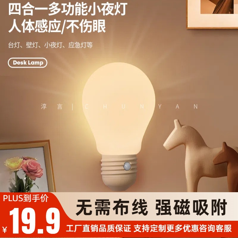 淳言人体感应灯小夜灯人来即亮无线磁吸过道宿舍床头夜间护眼壁灯