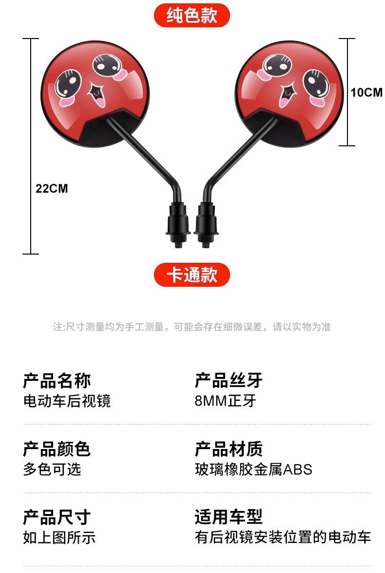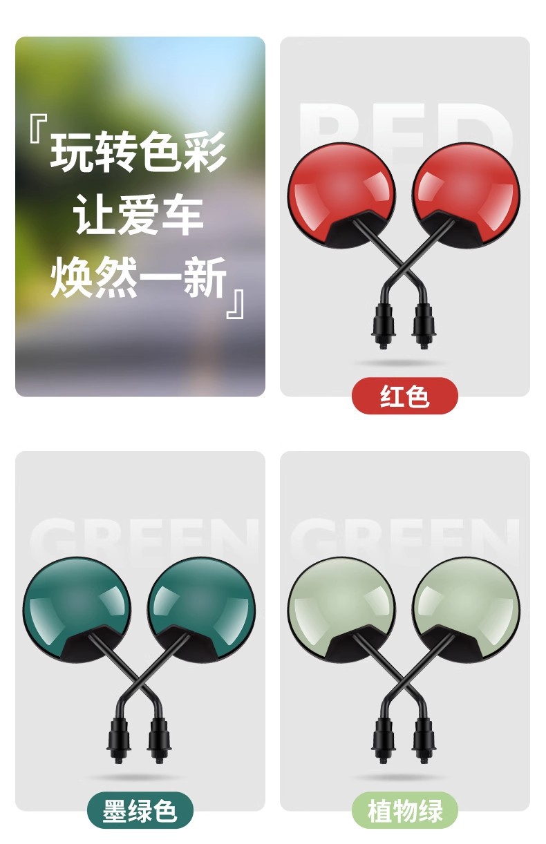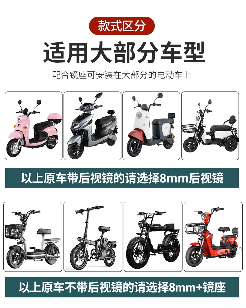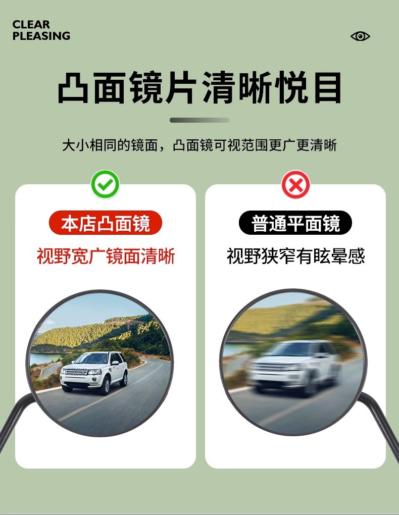 电动车后视镜自行车电瓶车反光镜踏板倒车凸面镜通用