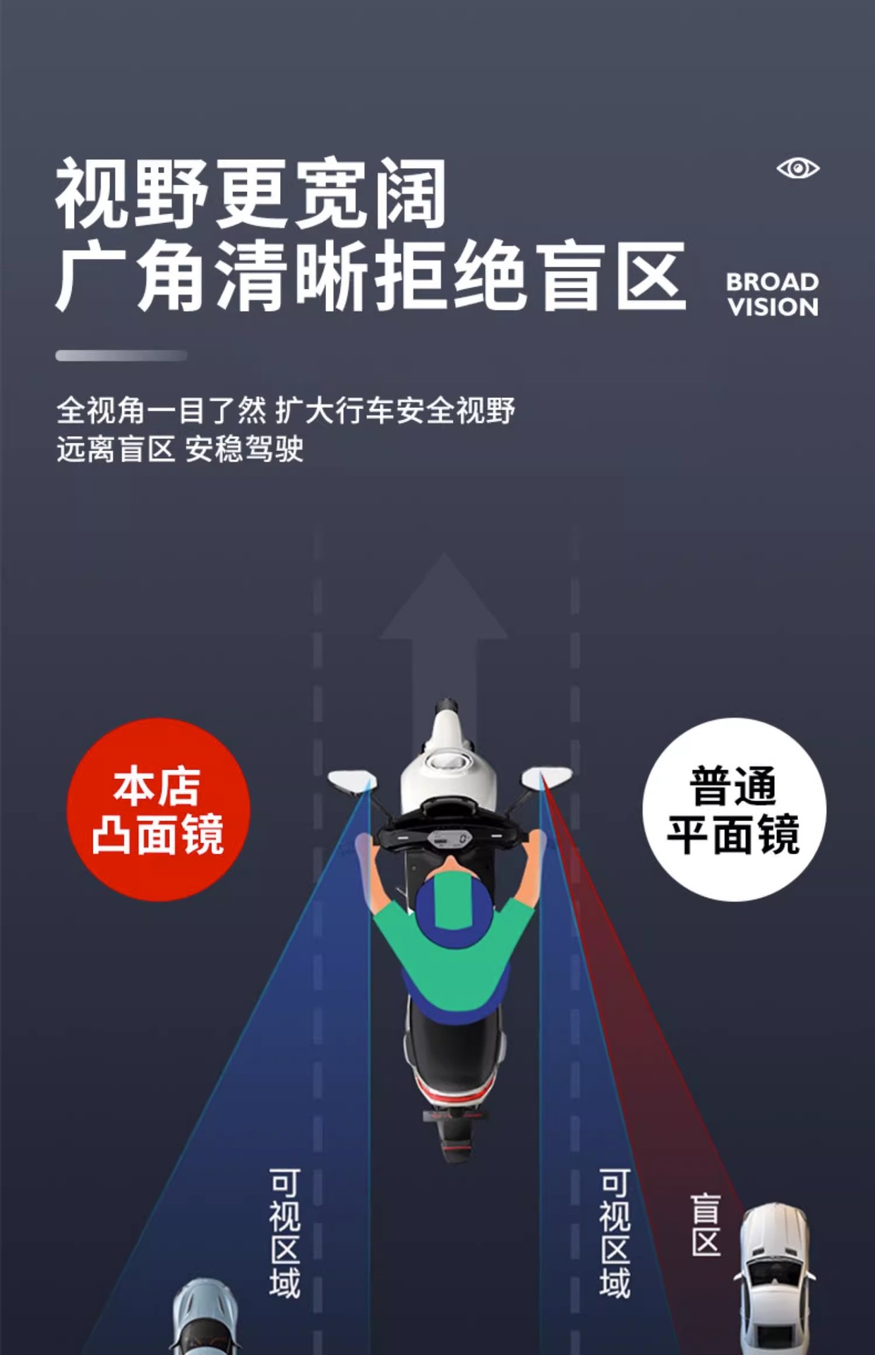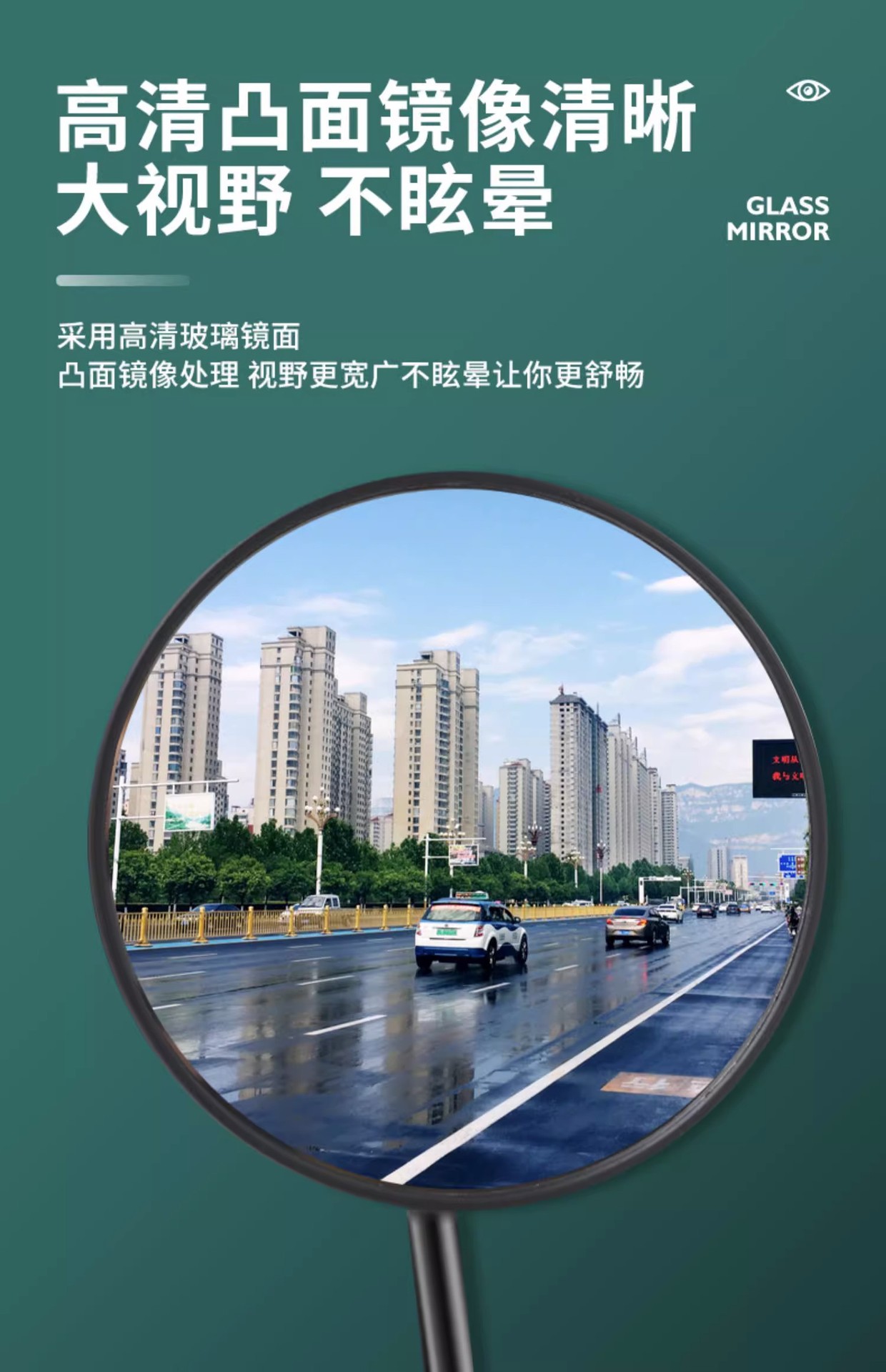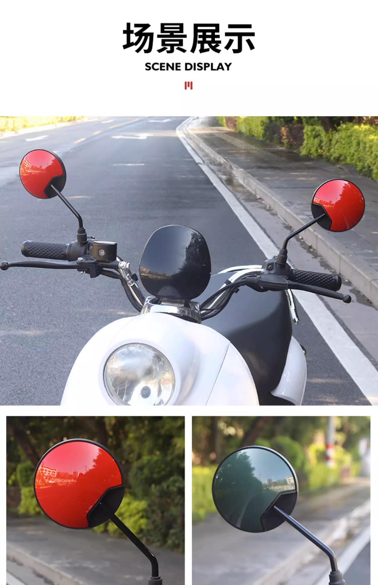 电动车后视镜自行车电瓶车反光镜踏板倒车凸面镜通用
