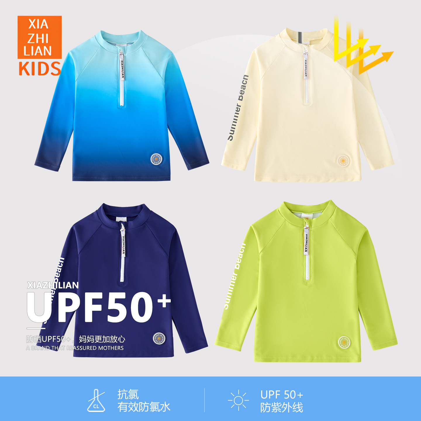 韩国儿童潜水服男童浮潜单上衣女童防晒长袖半拉链沙滩冲浪服泳衣