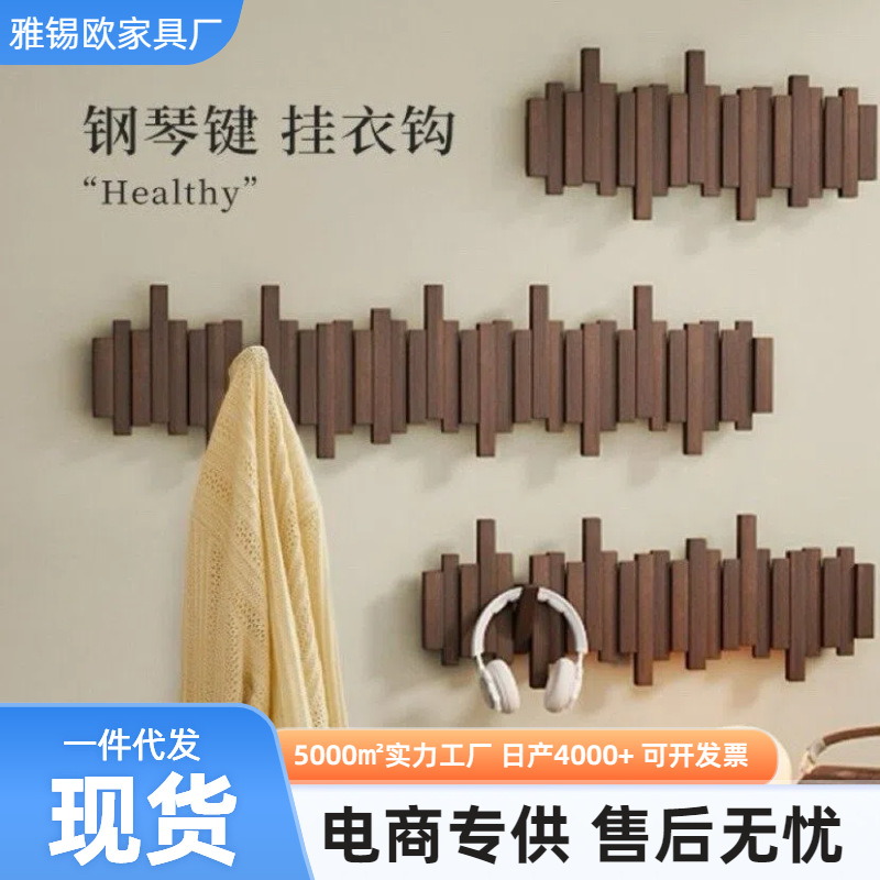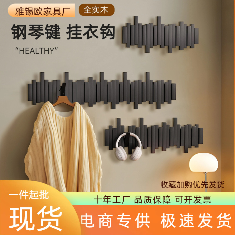 实木钢琴键挂衣架原木壁挂衣钩卧室玄关入户门后置物免打孔衣帽架