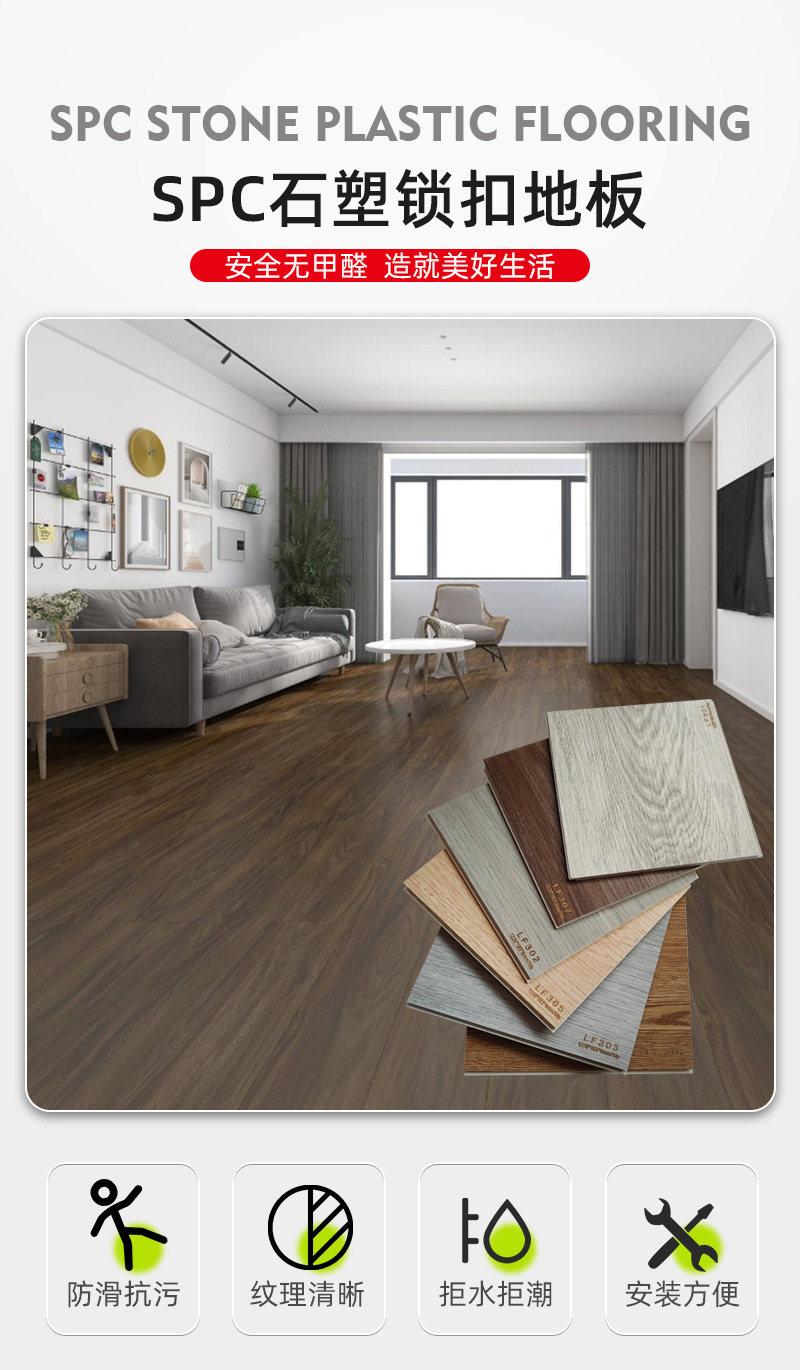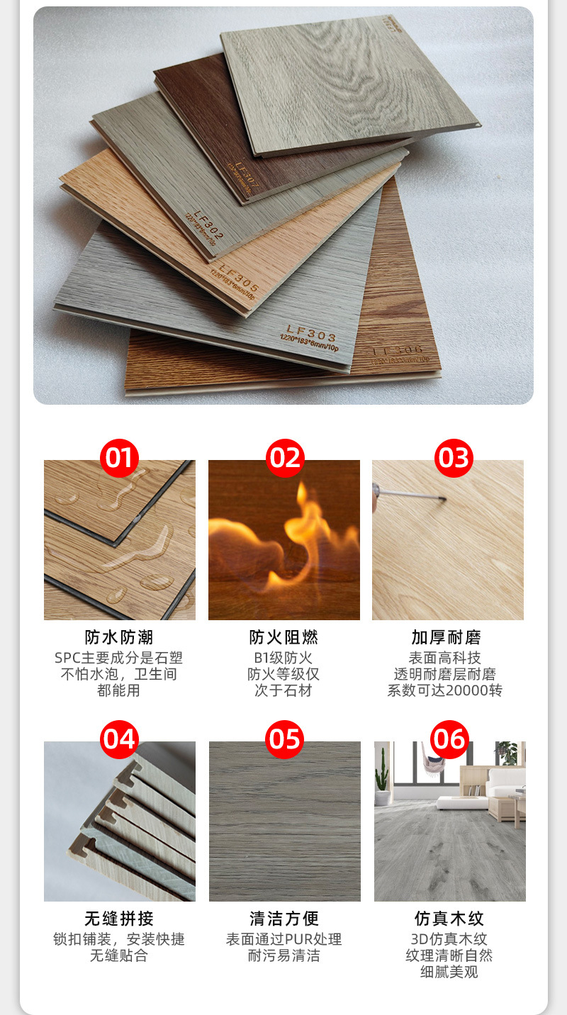 メーカー直販SPC石塑性ロック床PVC石晶防水滑り止め耐摩耗ホテル賃貸工事床