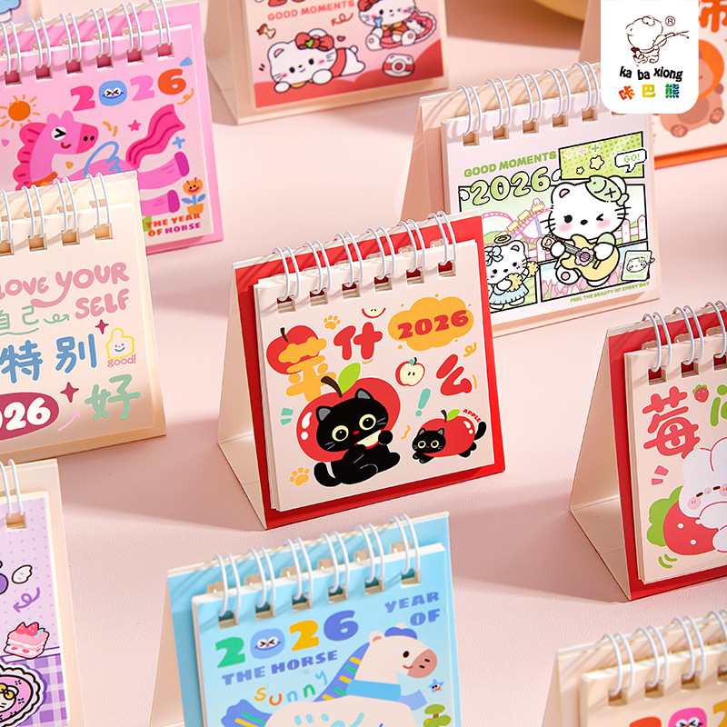 2026年新款迷你小台历卡通可爱苹果小猫桌历日历桌面摆件学生奖品