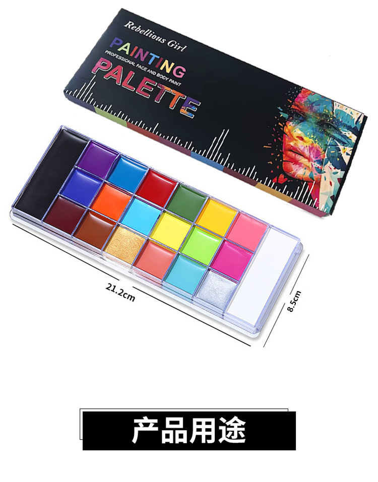 カラー 20色の油性の絵 (厚いタイプの中国語版は検査報告書があります),20色の脂性色絵 (薄いタイプ),12色油性彩色絵96g (中国語版に届け出検査報告書がある),12色油性彩色42g (中国語版に届け出検査報告書がある),単色ボディーペイント (ブラック30g),単色ボディーペイント (ホワイト30g),単色ボディーペイント (レッド30g),20色八卦盤油彩人体彩色絵,20色の油性塗り絵 (厚い英語版の海外販売),12色油性彩色96g (英語版海外販売),12色油性彩色42g (英語版海外販売)