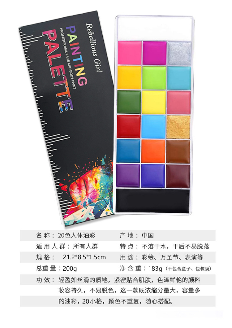 クロスボーダーの新型20色の油彩の顔の色の人体の彩色は舞台の化粧の顔の彩色の万聖のクリスマスの油彩の膏を描きます。