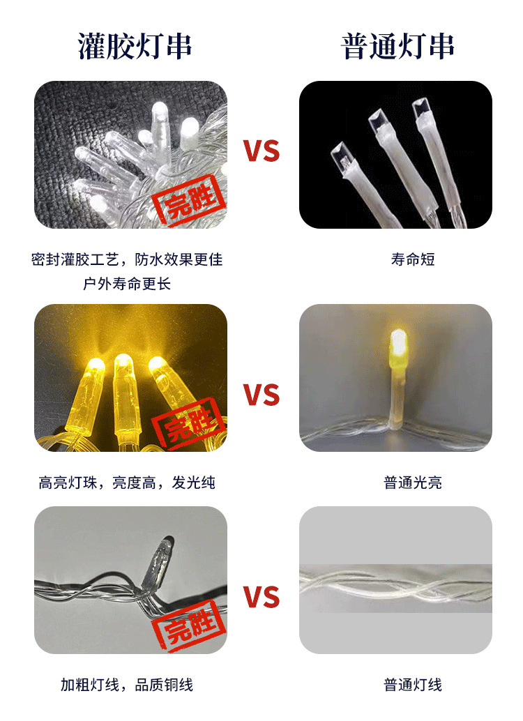 PVC灌胶灯串LED彩灯加粗闪灯串户外街道亮化工程节日氛围装饰灯串