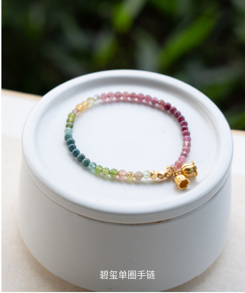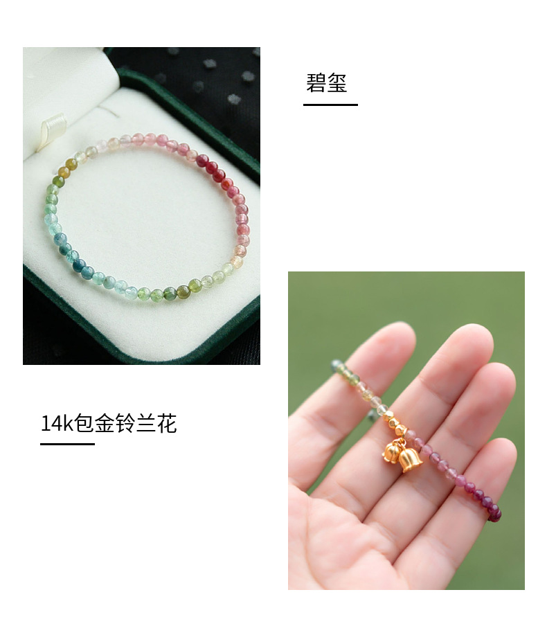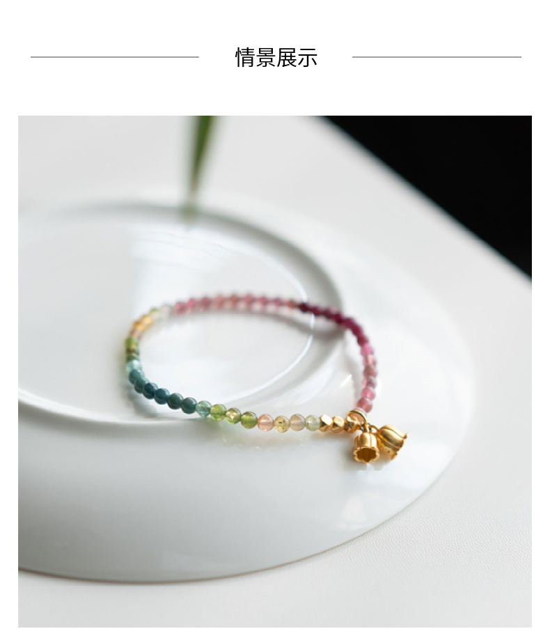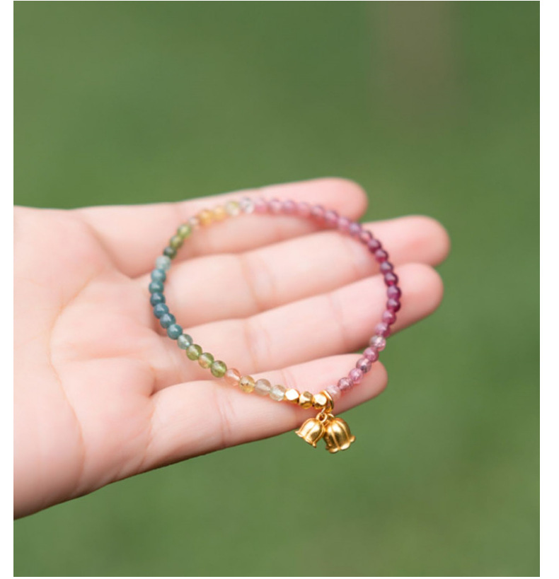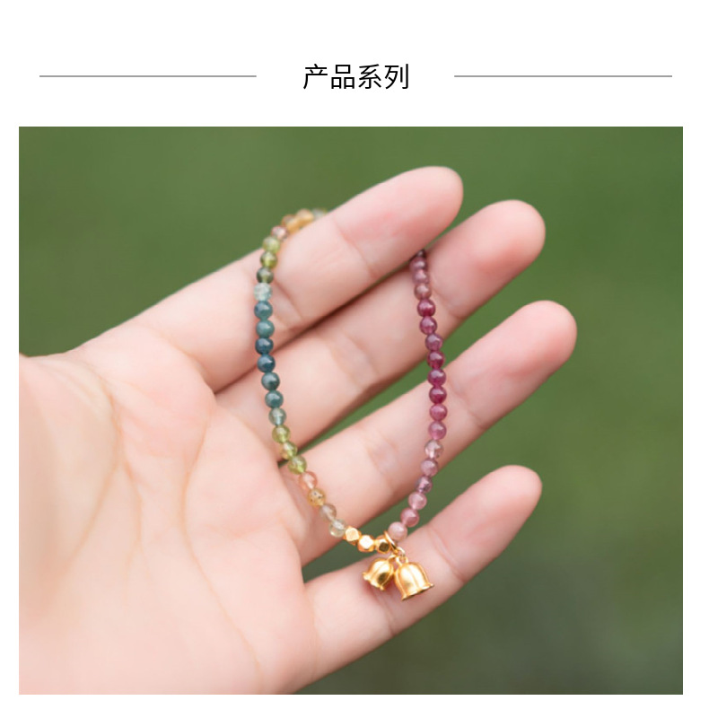 天然碧璽3.5mm前後のグラデーション色の手串極細彩宝ブレスレット水晶鈴蘭ペンダント小清新