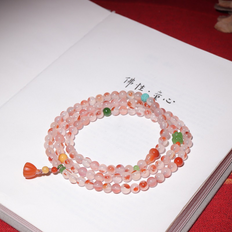 和田玉6mm玉の南紅瑪瑙の氷紅の玉のチェーンの手の串は1代の赤い本の爆発のファッションを代行します。