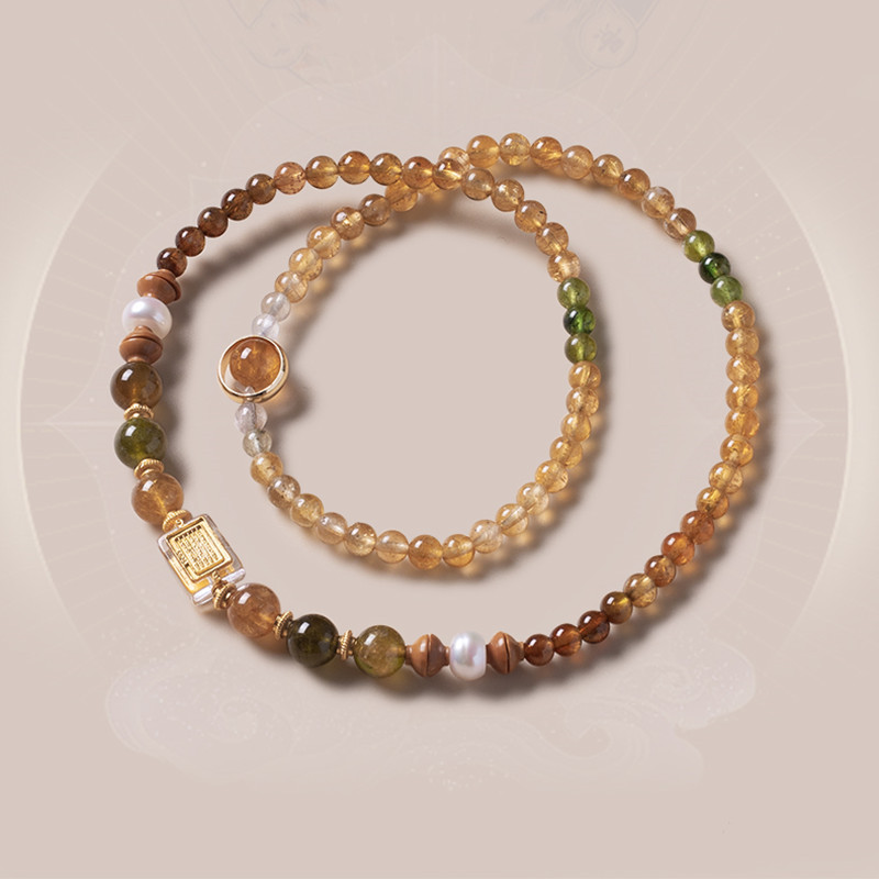 天然碧璽6mmのブレスレットの女性のタイプの軽豪華な大衆の高級感の真珠は黄色の発晶の4mmの手の串の多い輪を配合します。