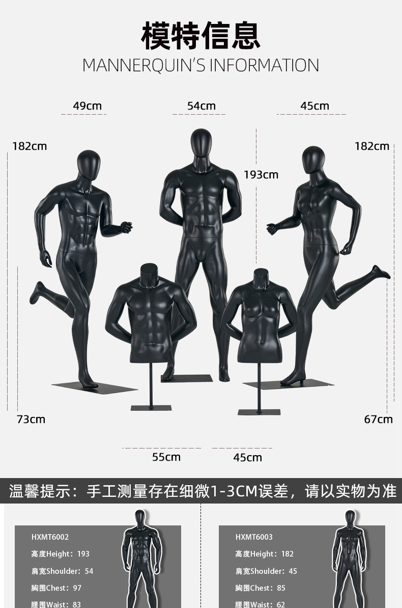 黒色全身モデル道具服装展示棚人体モデル男性服店バスケットボールランニングポット運動ダミー