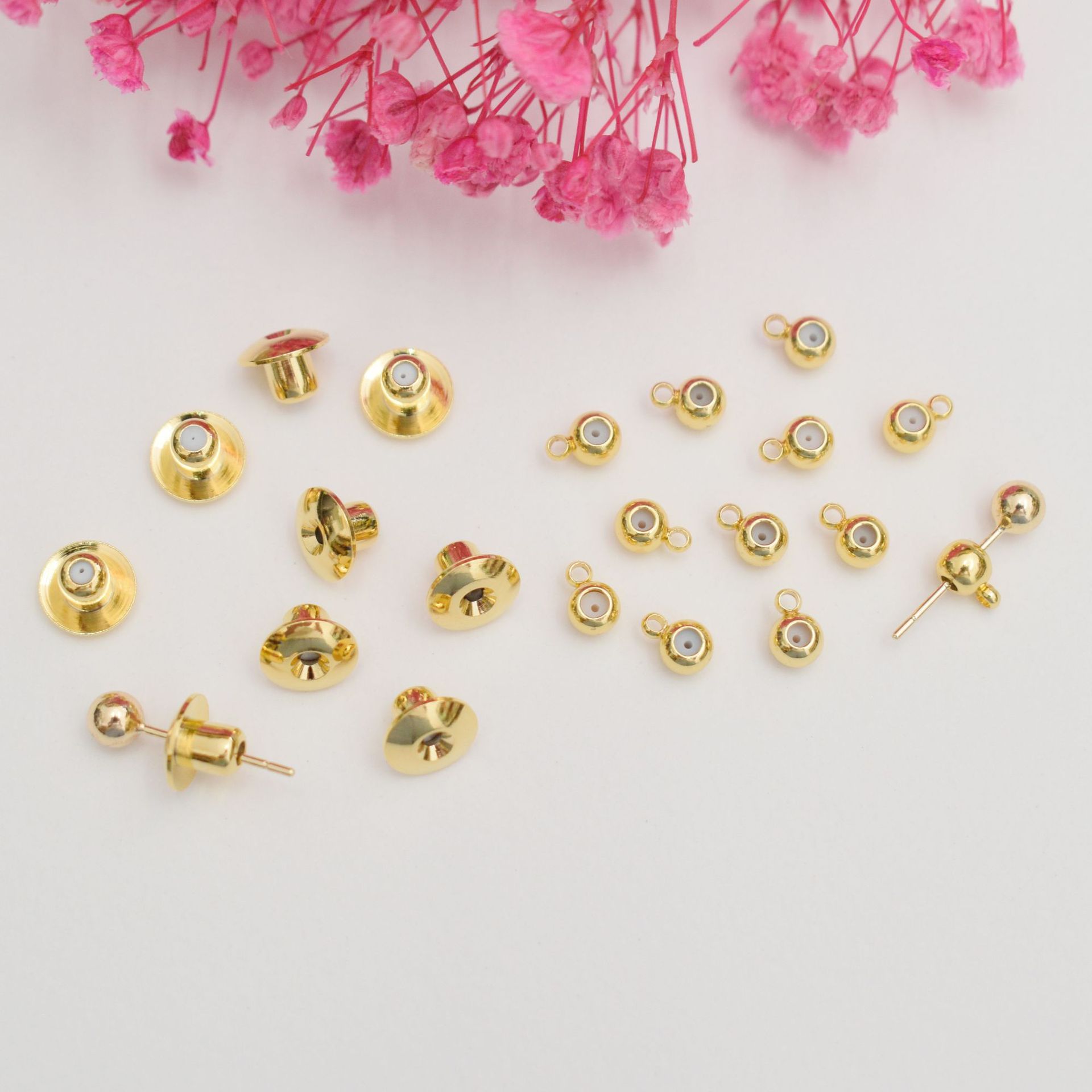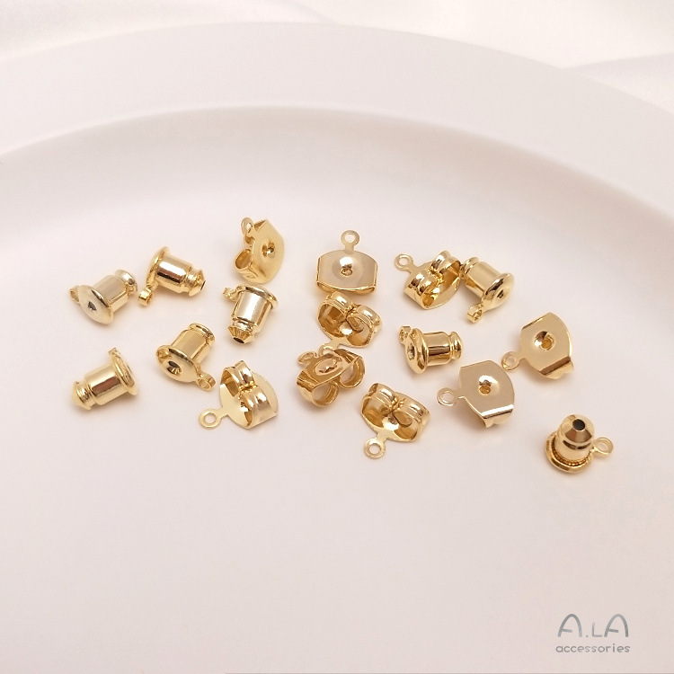色褪せない18K本金弾丸型イヤリングピアスキャップDIY手作りイヤリングピアススタッドA47