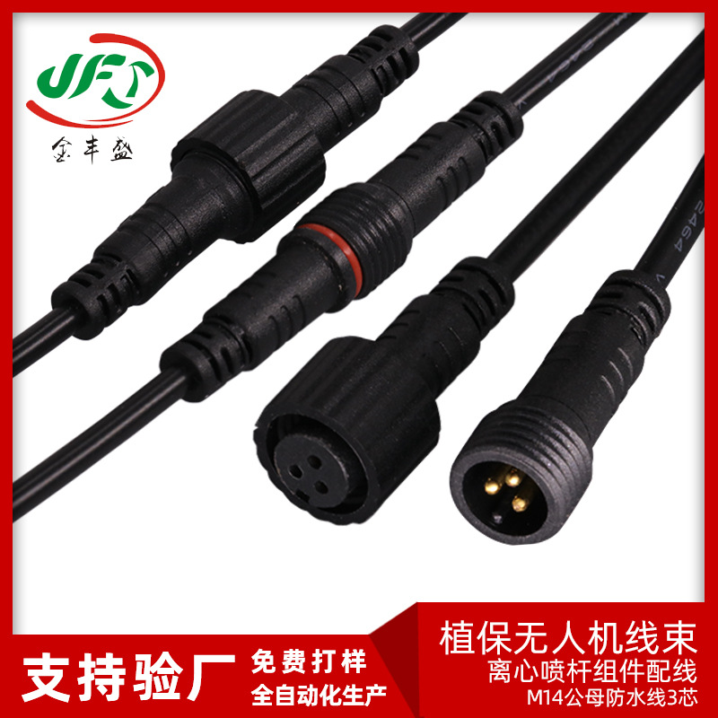 M14公母对接防水线3芯 植保无人机线束4芯离心喷杆组件配线喷头线