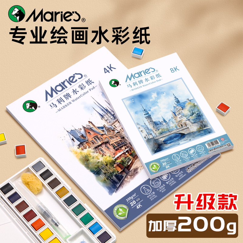 マリ札4k8k水彩紙厚手200g美術生専用画紙原木パルプ中太紋小紋