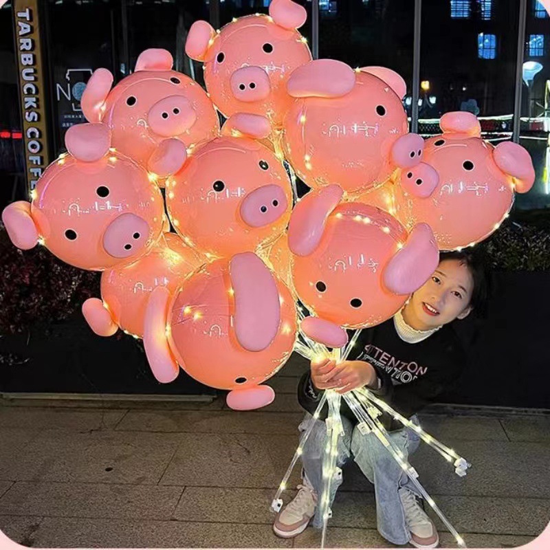 ネットの赤い漫画のブタの風船の発光の子供のかわいい形の新型の幼稚園の入り口は露店を出して波のボールを押します。