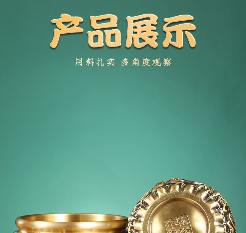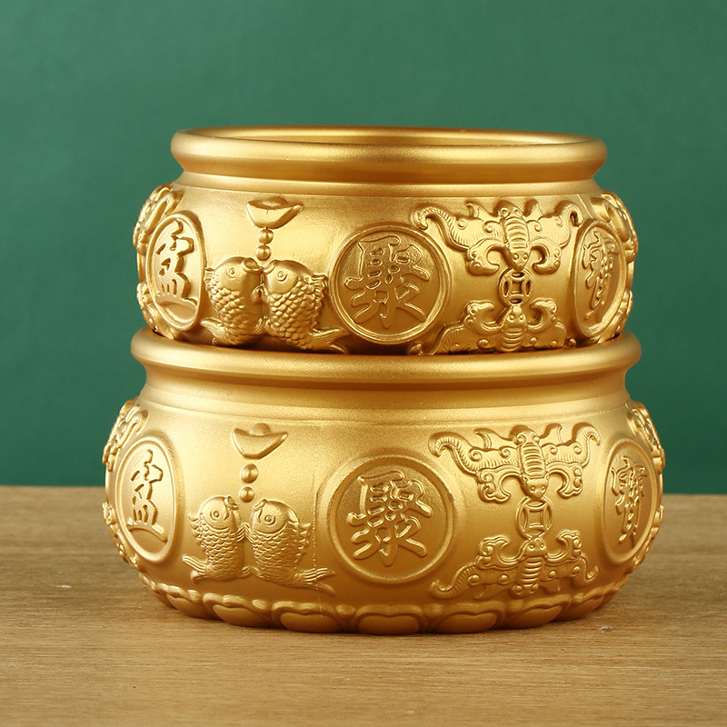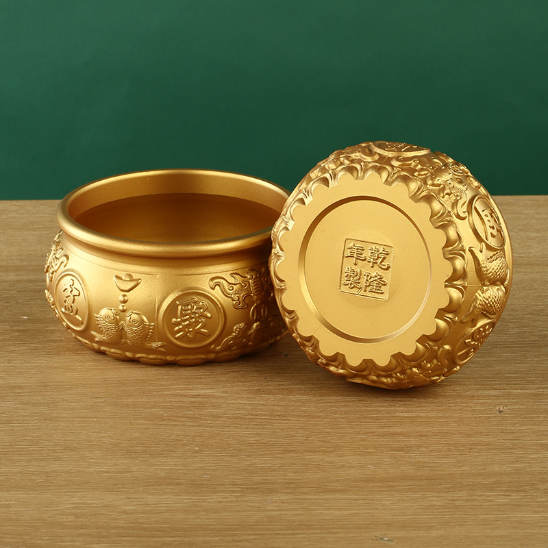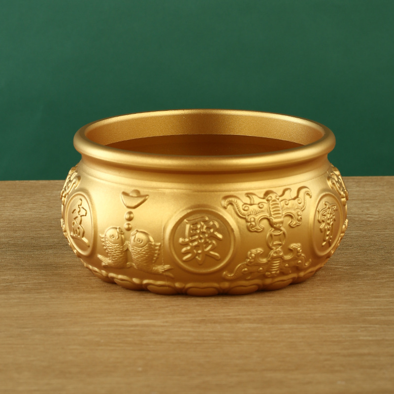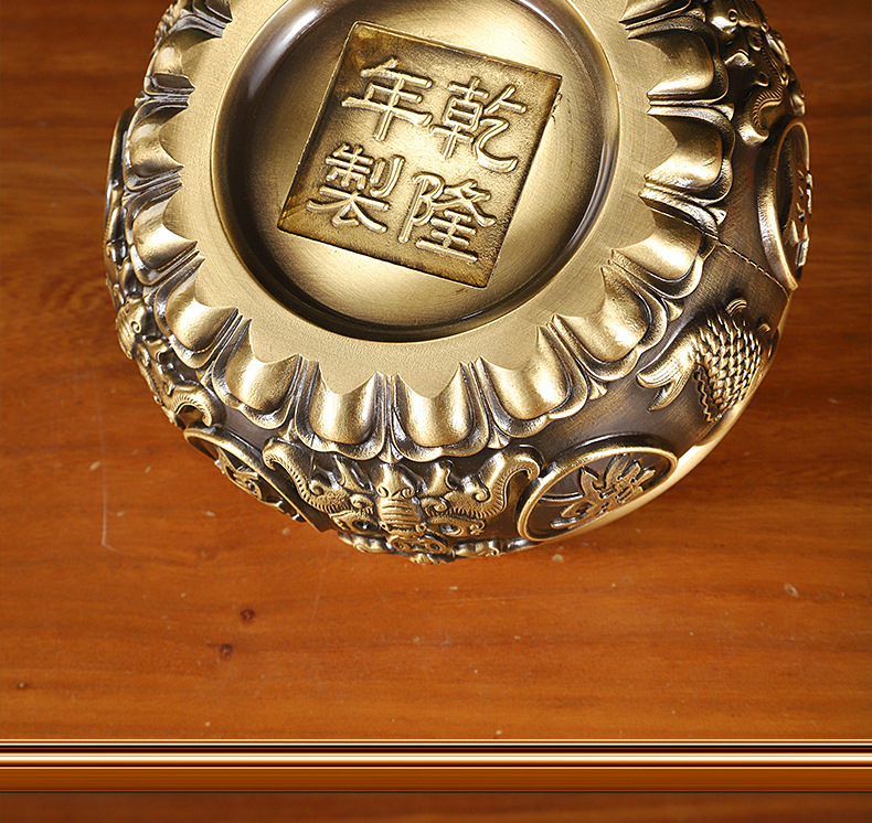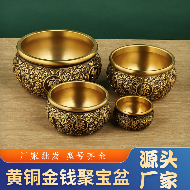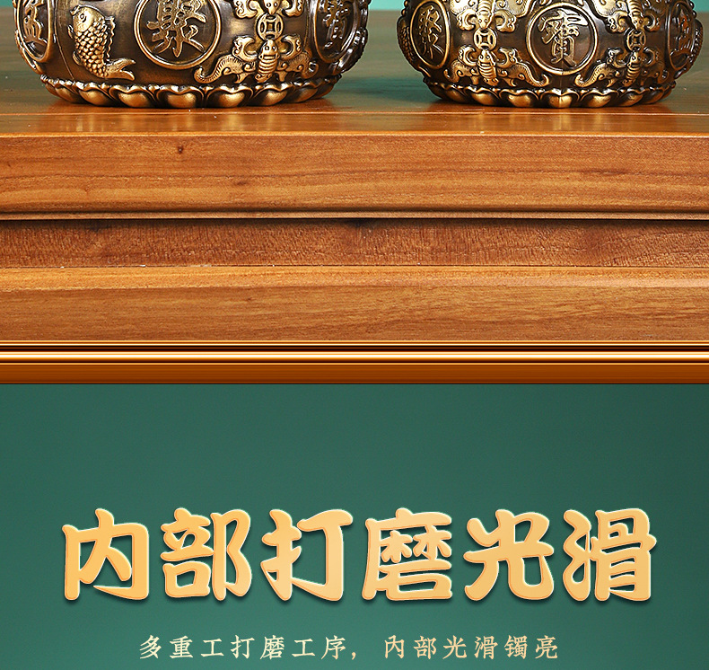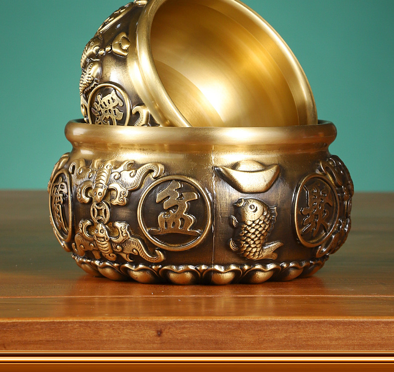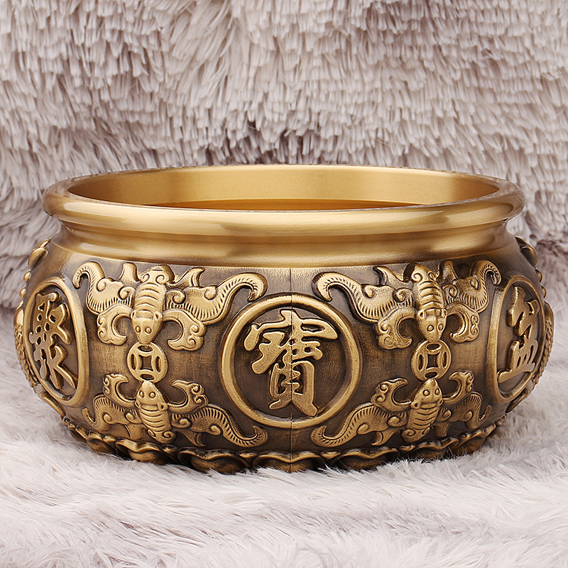 黄銅聚宝盆の置物八福聚宝盆の線引き聚宝盆の家庭用デスクトップの置物卸売り