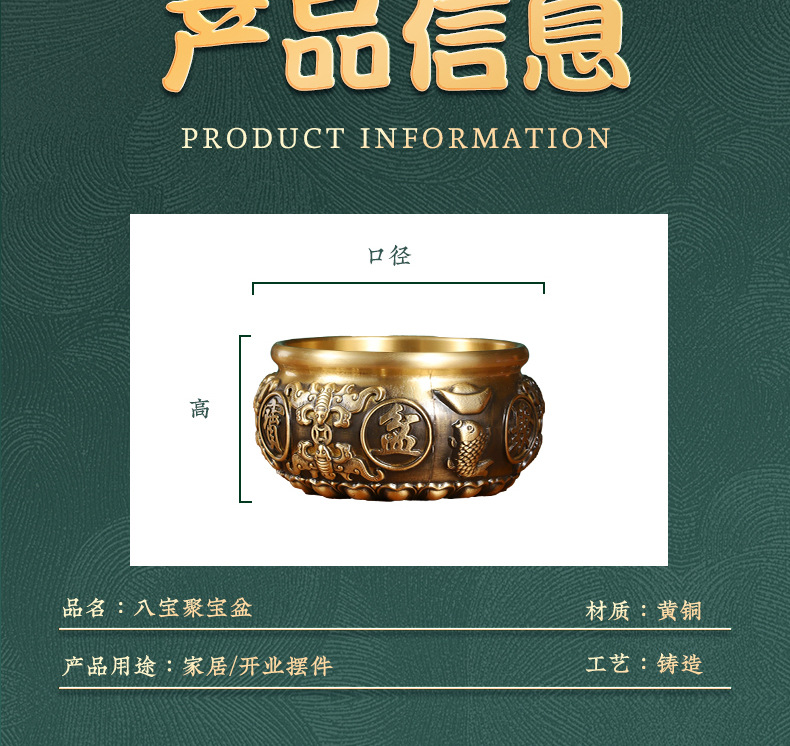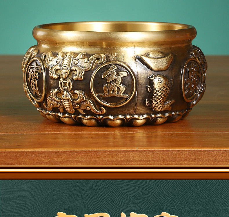 メーカー卸売り銅八福聚宝盆黄銅聚宝盆置物家庭用室内オフィス工芸品置物