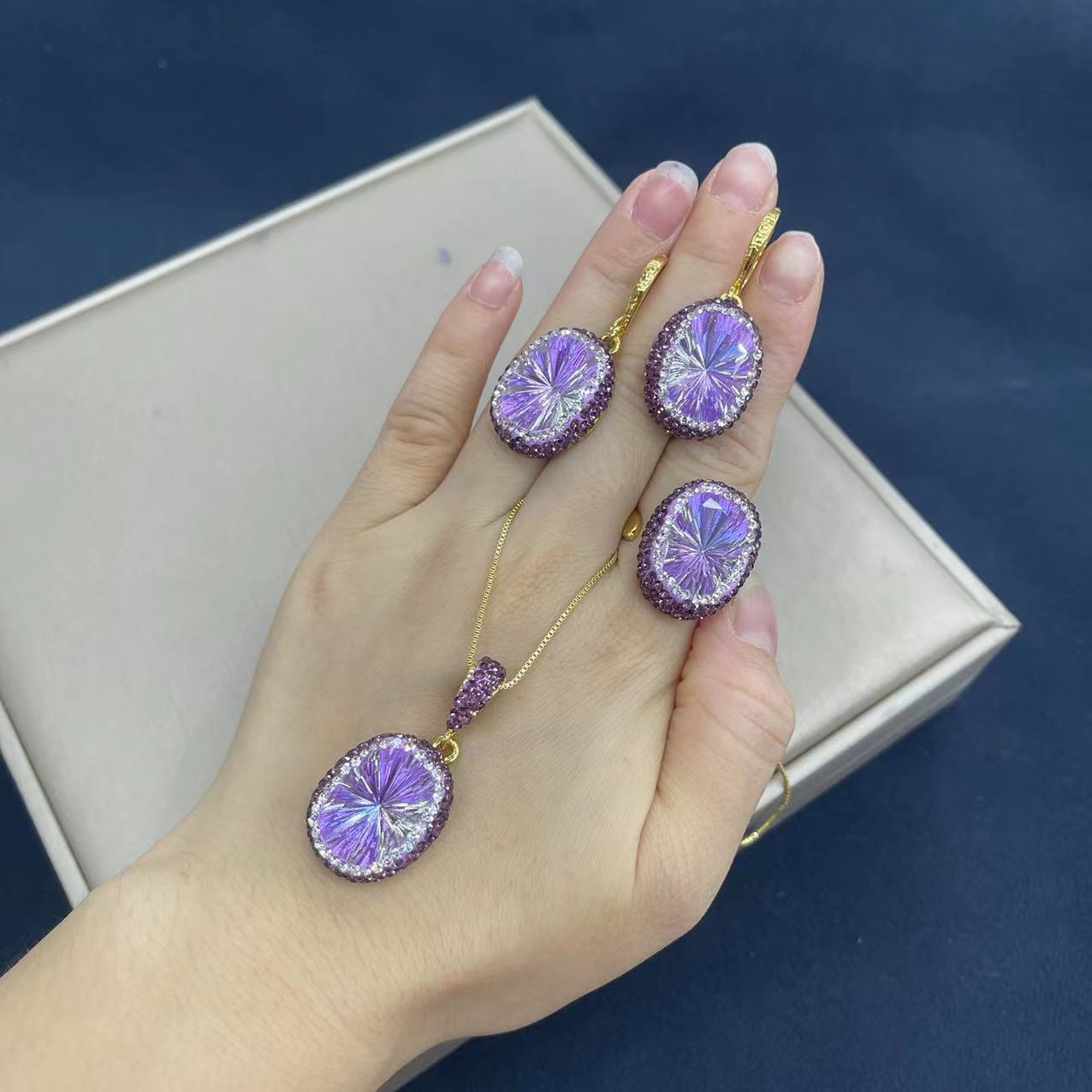 2023新型天然紫水晶四点セット中古ジュエリー小衆高品質イヤリングネックレス国境を越えた卸売り