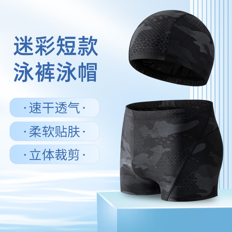 夏の短い迷彩水泳パンツは柔らかい肌着ファッション速乾水泳パンツ男性水泳帽が水着卸売りを大きくした