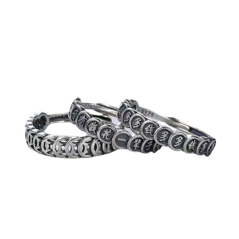 国風復古ピシュピスト招財男士指輪泰銀六字箴言招財入宝活口指環人差指