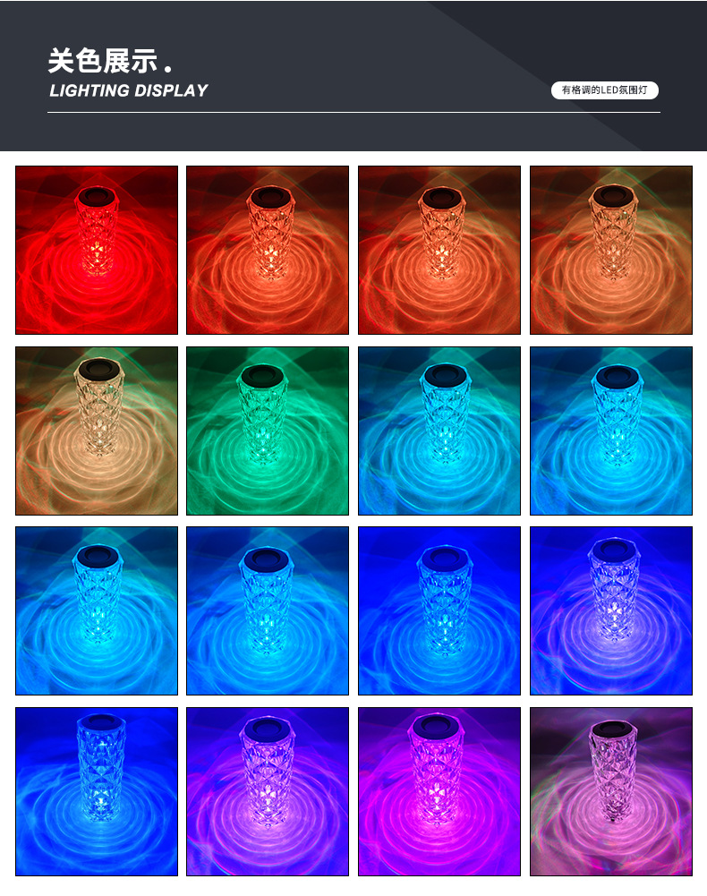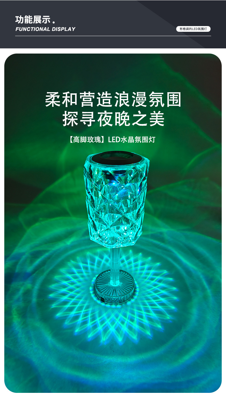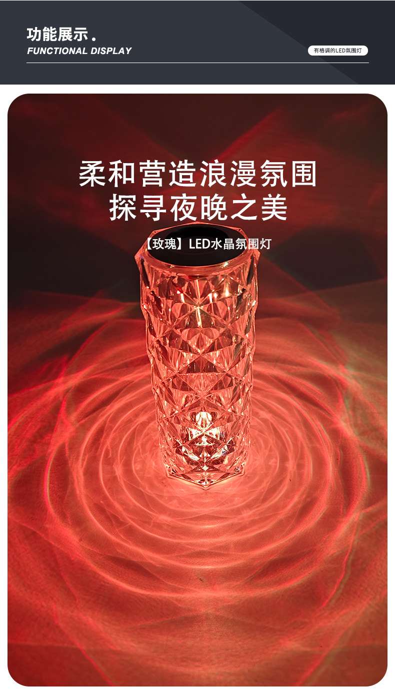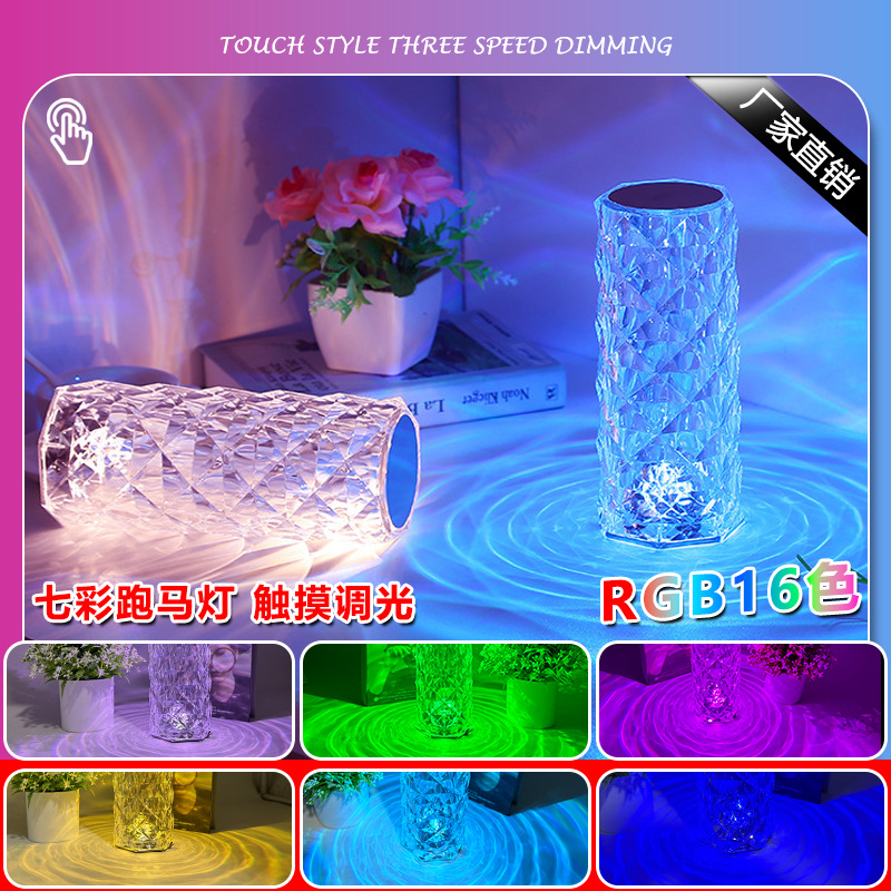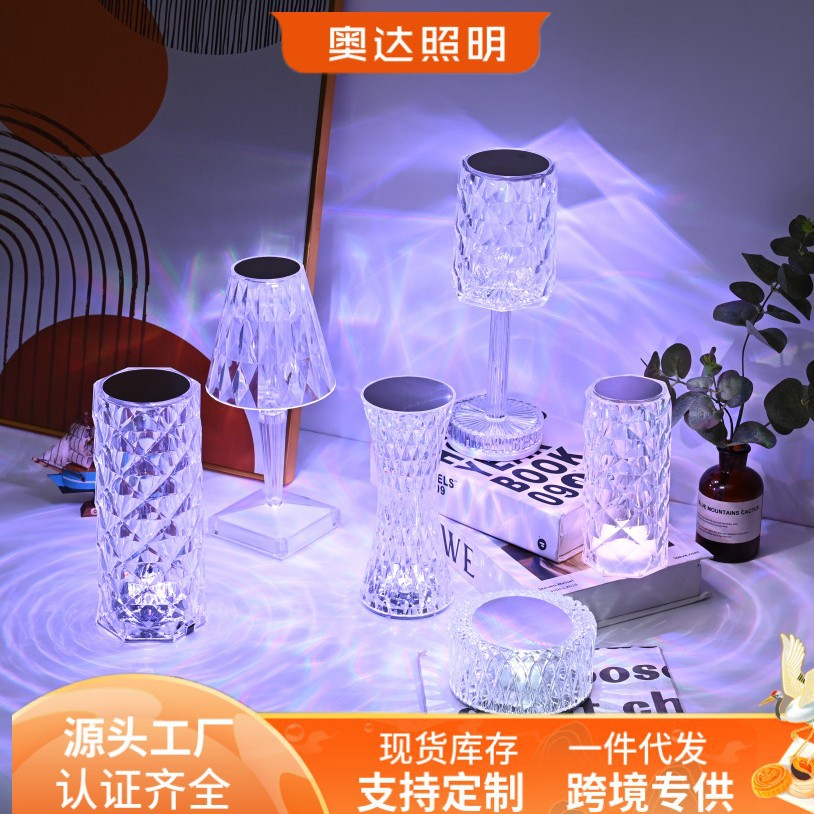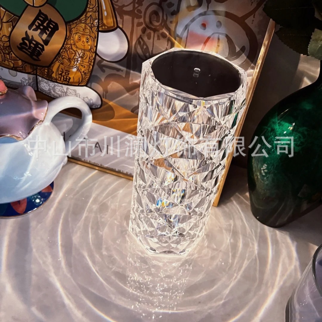 感应台灯批发现代简约水晶玫瑰夜灯氛围感卧室床头触摸小夜灯