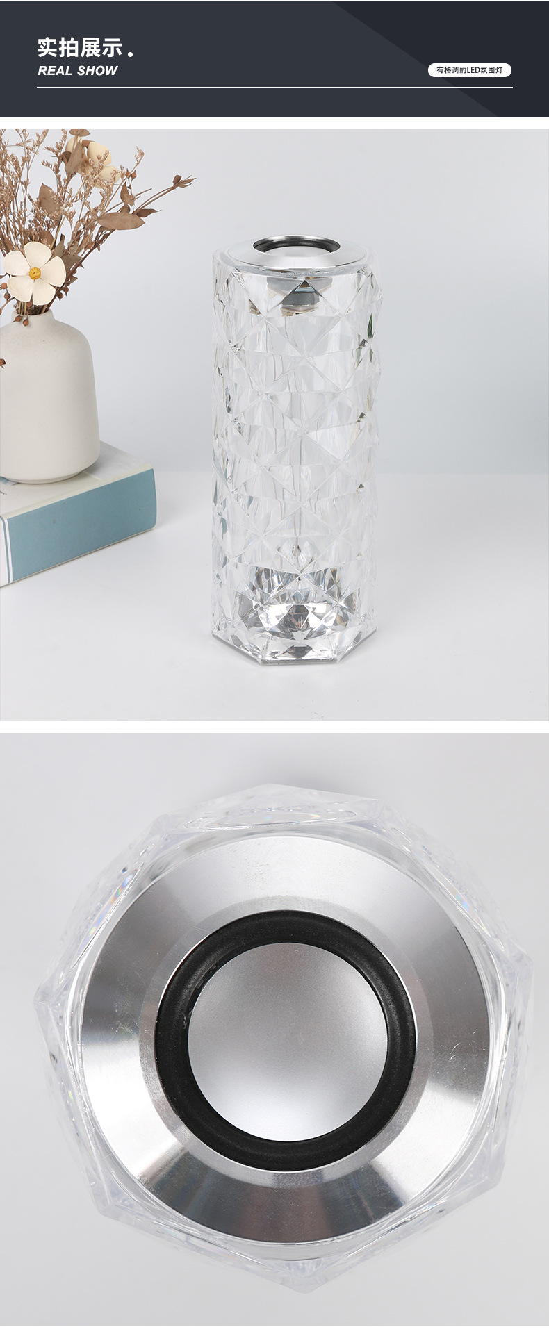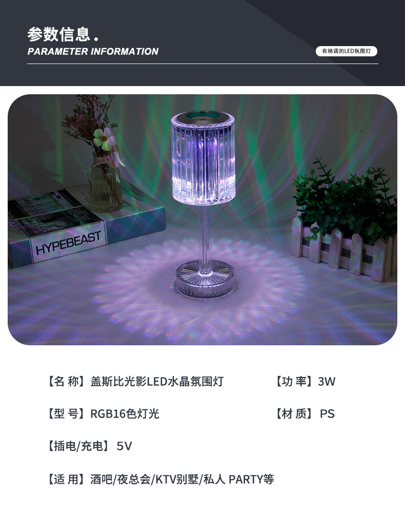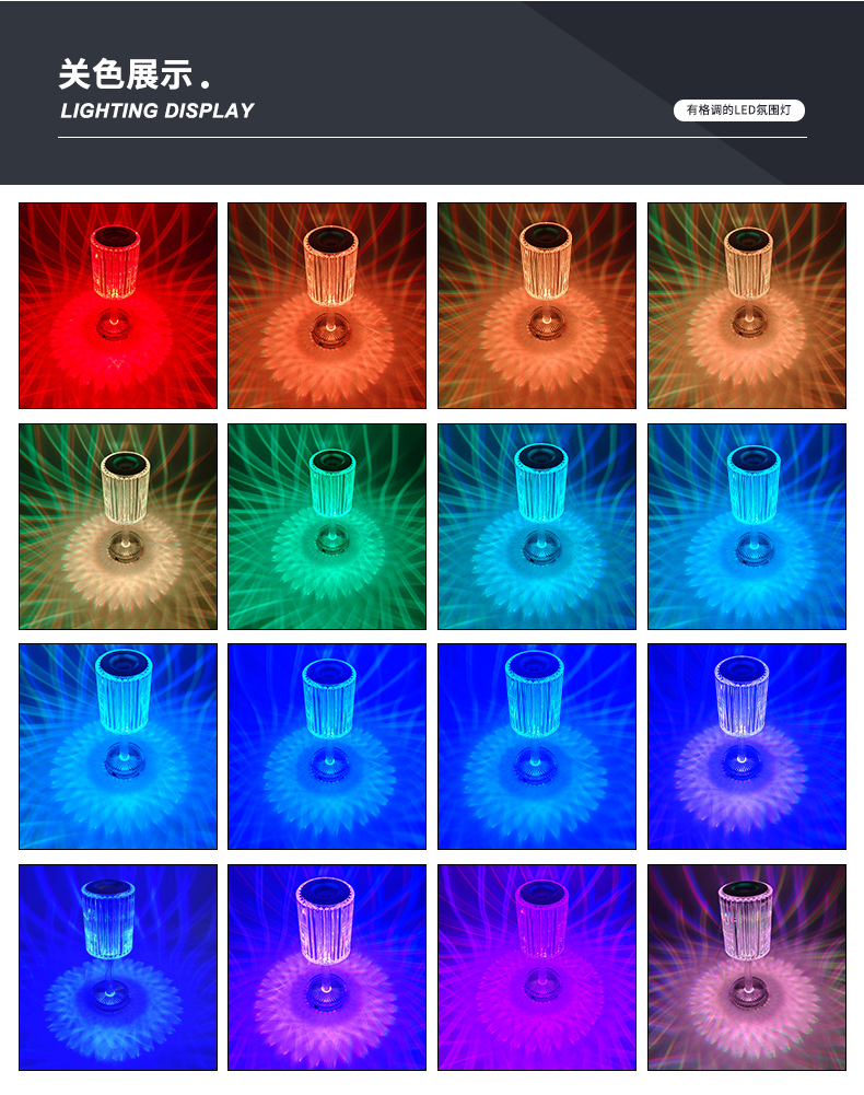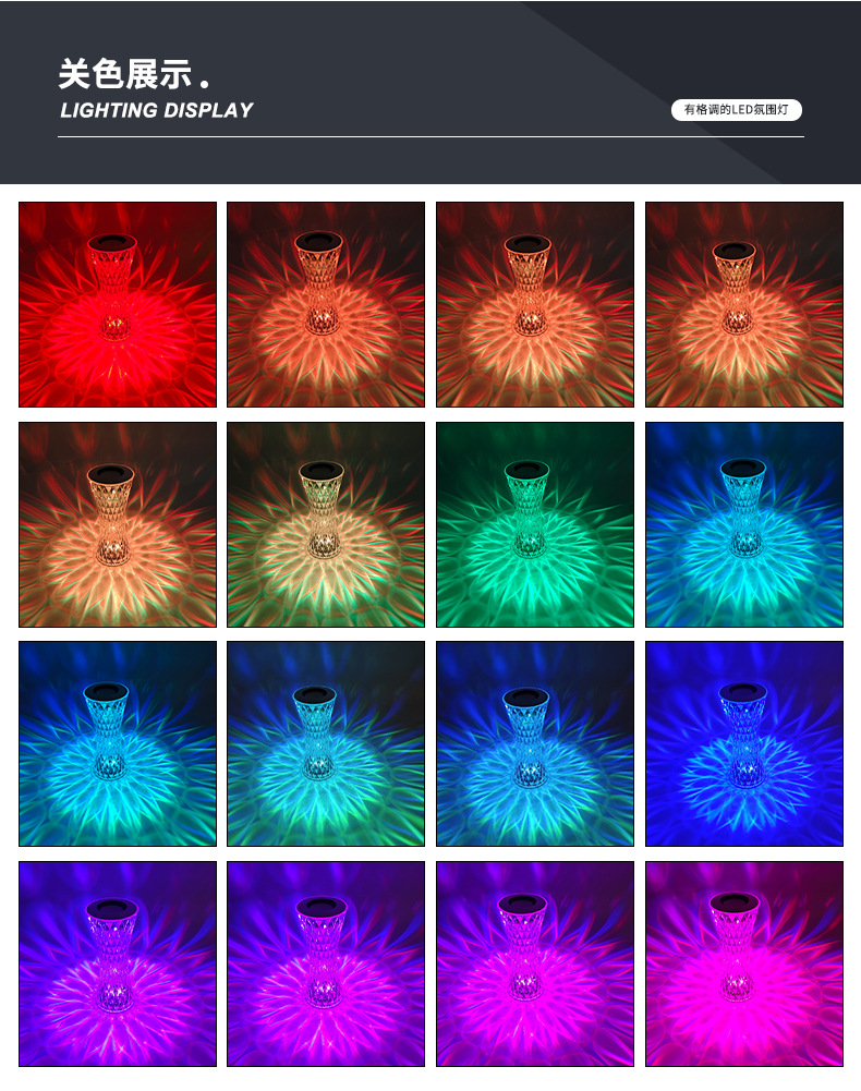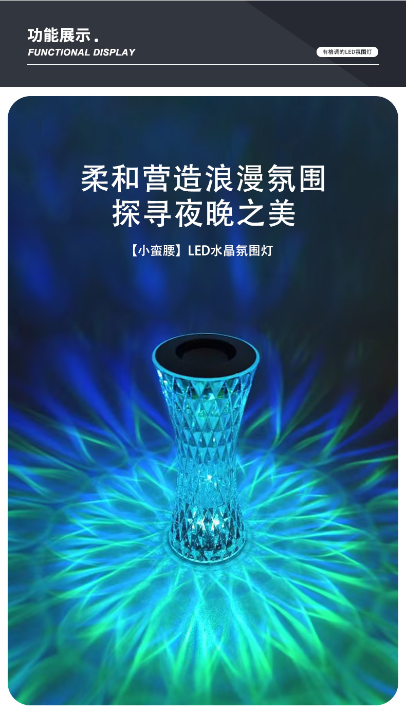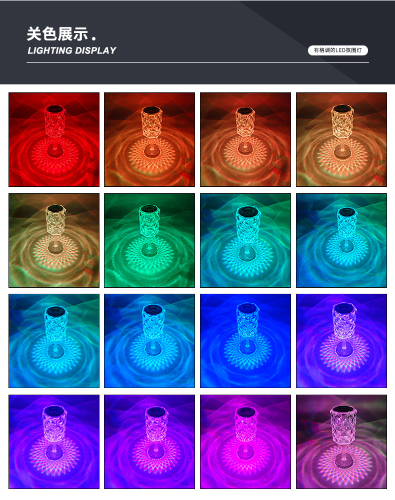 感应台灯批发现代简约水晶玫瑰夜灯氛围感卧室床头触摸小夜灯