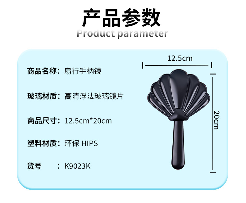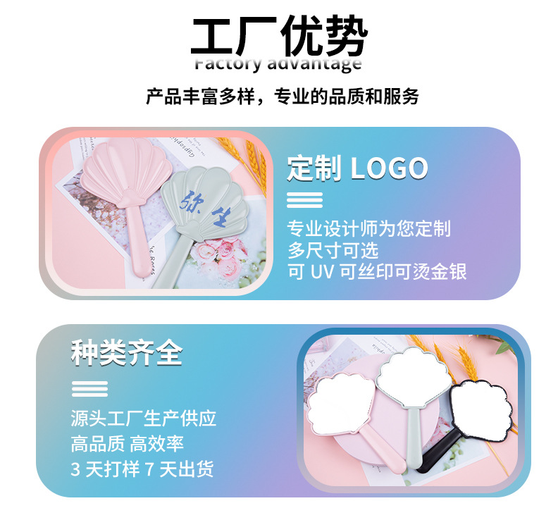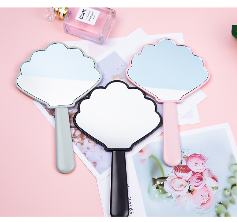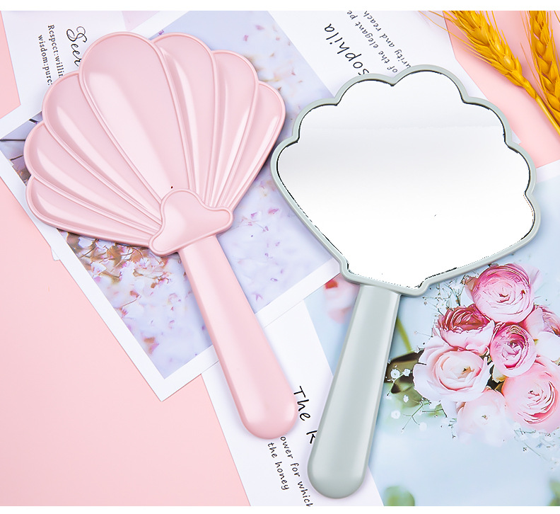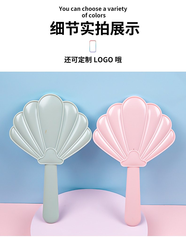 新しいアイデア貝殻手持ち鏡プラスチック化粧鏡少女化粧鏡はロゴを印刷できます。