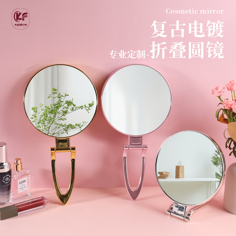新しいレトロな模様の鏡、大型電気メッキローズゴールド高精細化粧鏡、手持ち鏡、携帯用化粧鏡