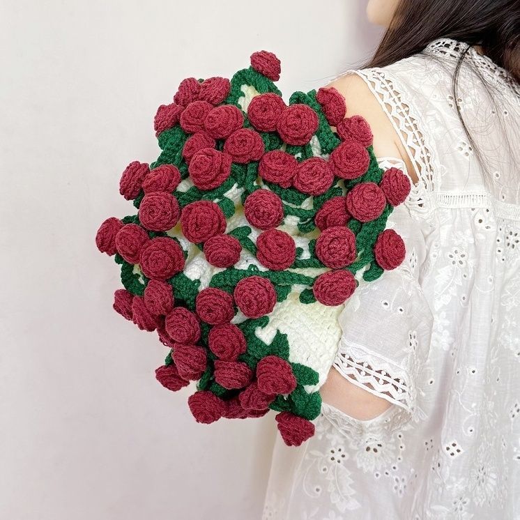 手作りdiyタイバラ花束ニット花自作材料バッグネット赤バラバレンタインデープレゼント