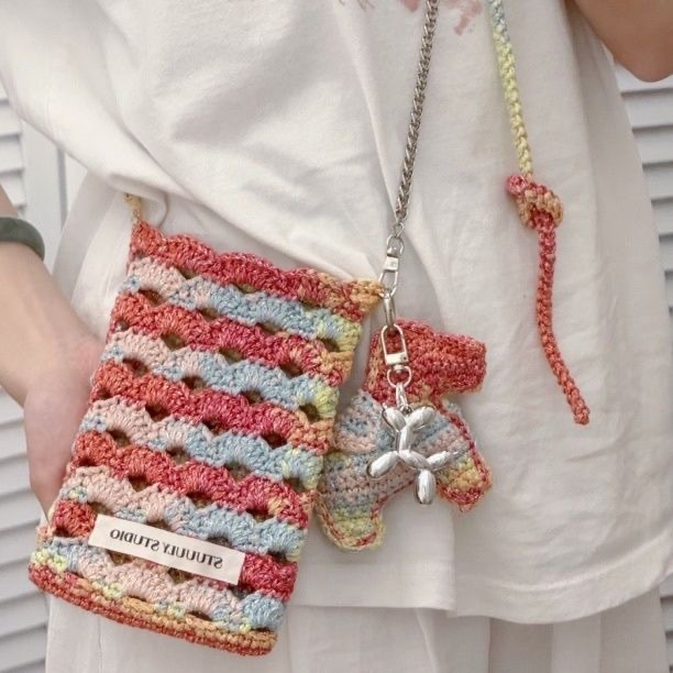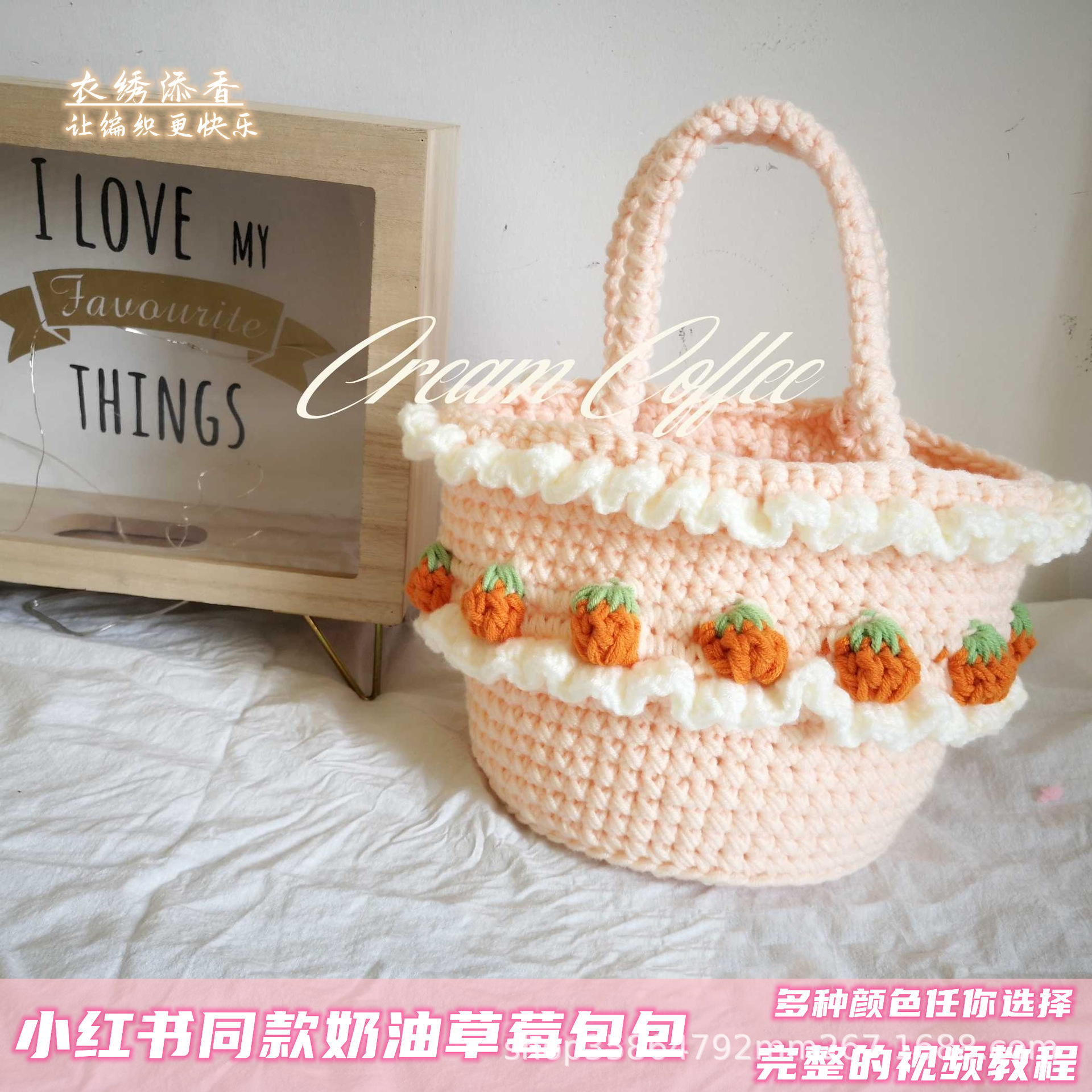 クリームいちごバッグ手織りバッグdiy手織りバッグ毛糸初心者入門編みバッグアンドロメダが親友を送る