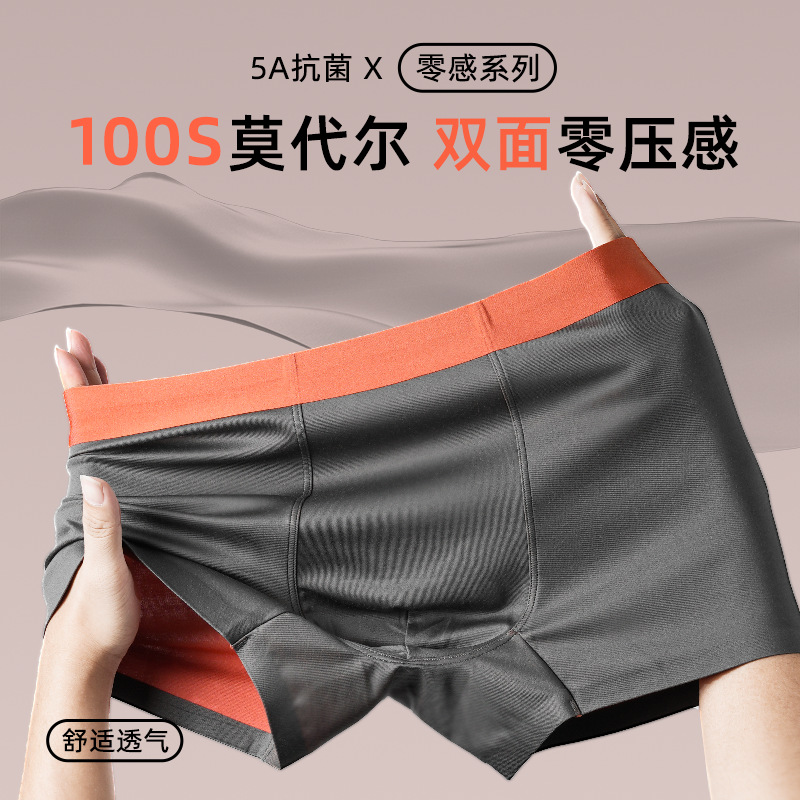 高档轻奢男士内裤100支双面无痕莫代尔桑蚕丝抗菌中腰四角裤