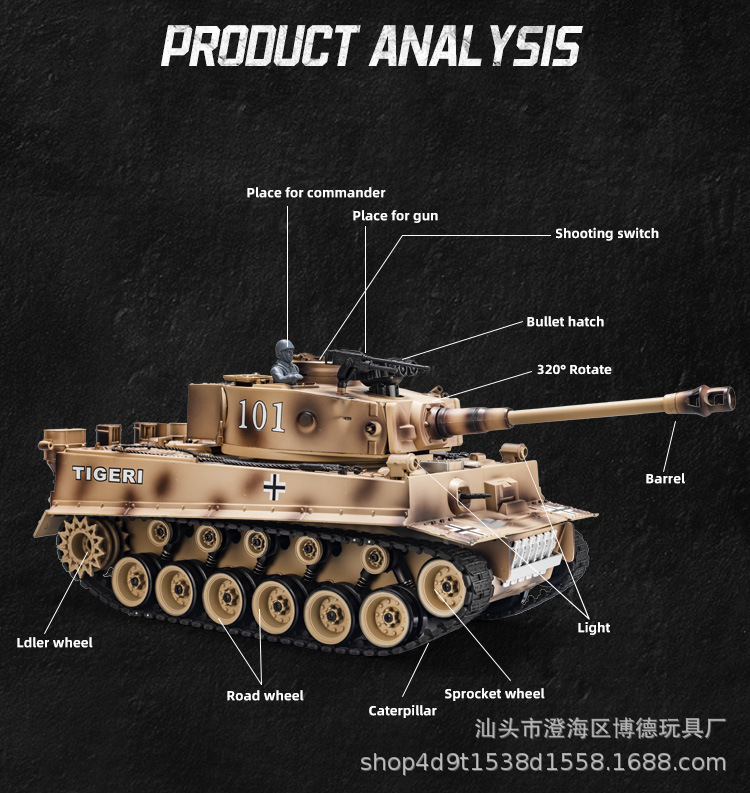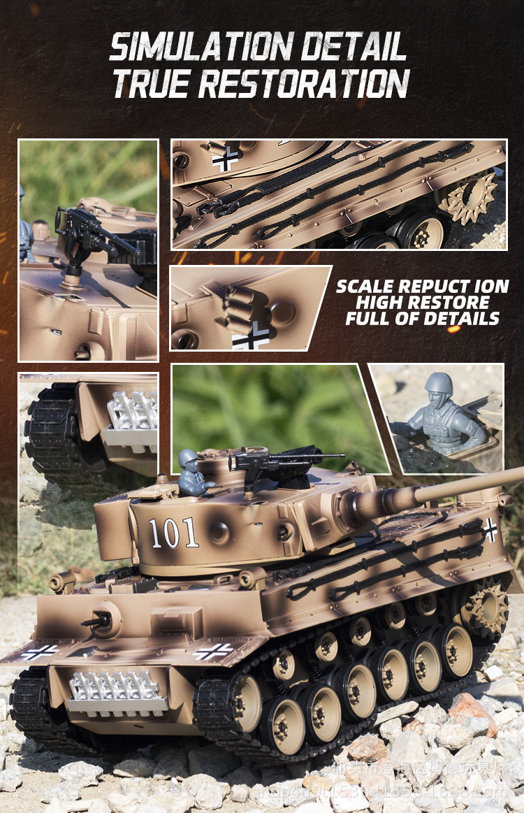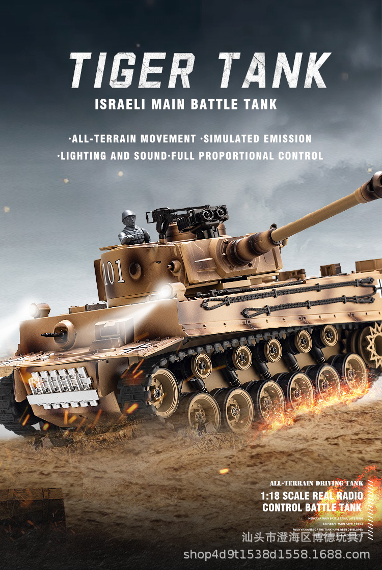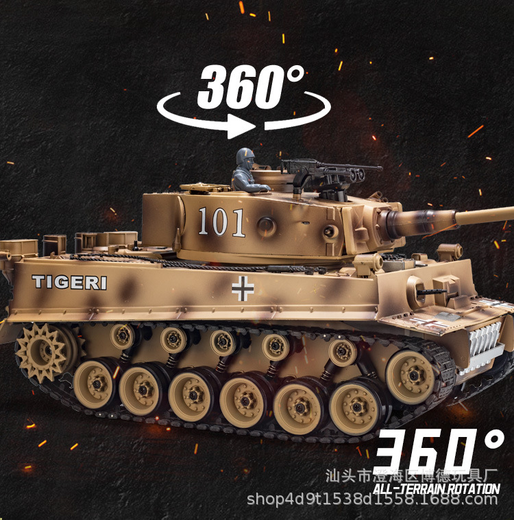 跨境德国虎式遥控坦克儿童玩具男孩电动可开炮合金模型汽车履带式