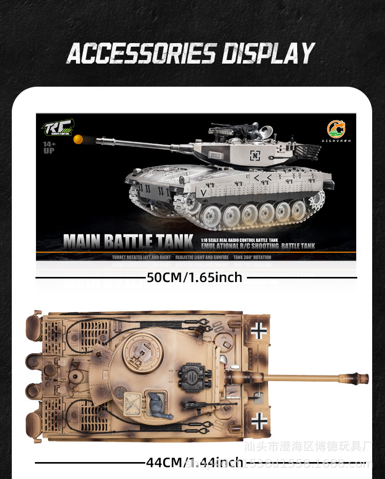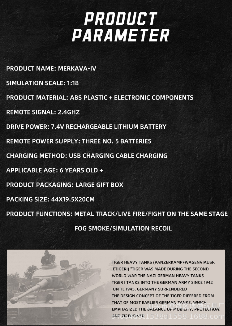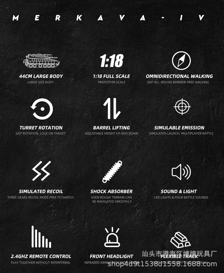 1:18金属製タンク イスラエル メカバ846 リモコン発射モデル オフロード戦車 弾発射可能