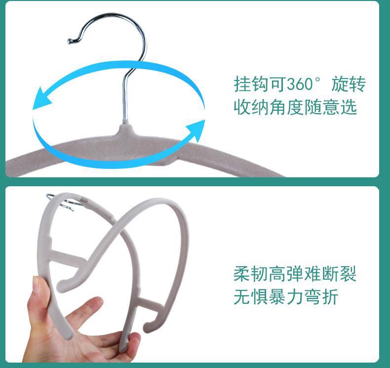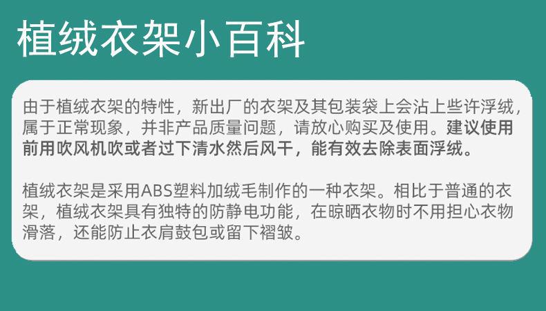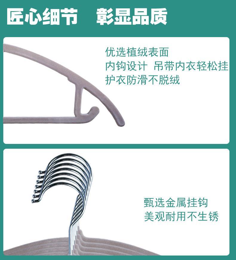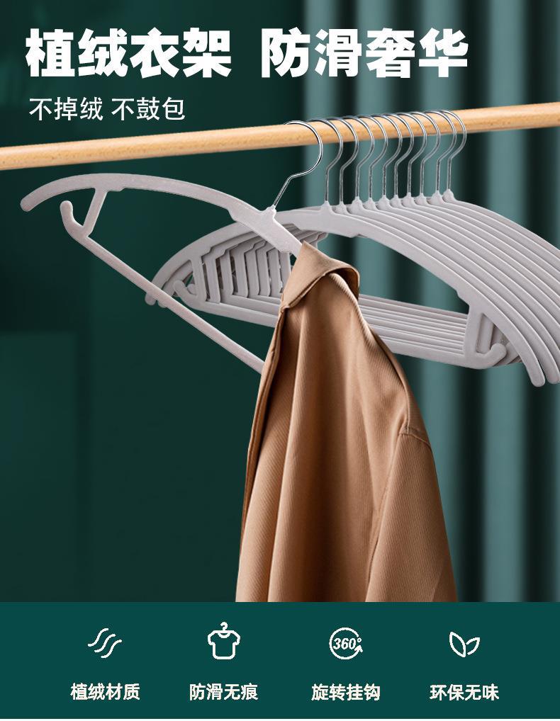 植毛ハンガー滑り止め無痕ビロードハンガー衣類支え乾湿両用家庭用寮衣類整理衣類掛け
