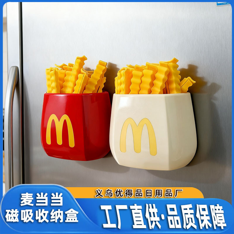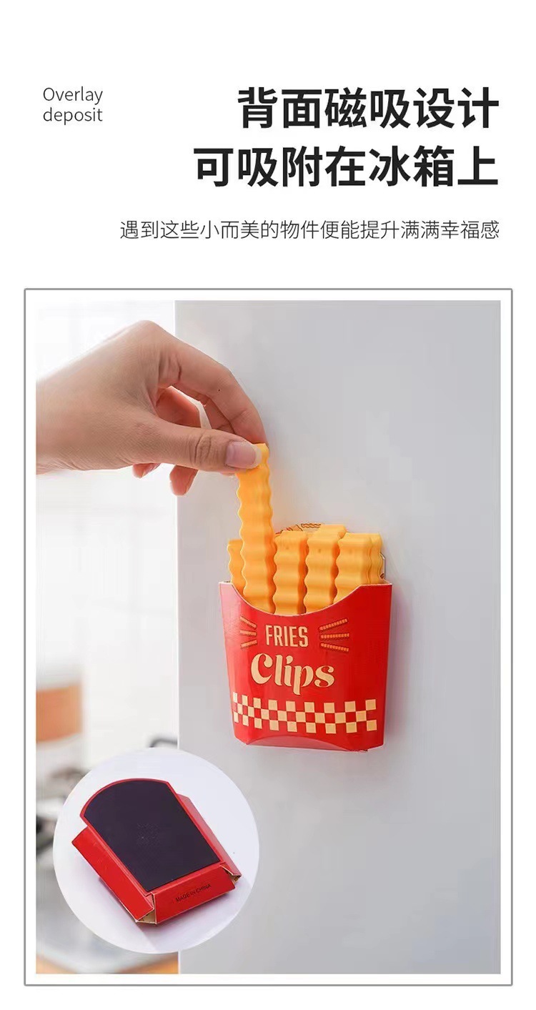 创意薯条封口夹磁吸冰箱贴收纳盒食品零食防潮密封夹多功能小笔筒