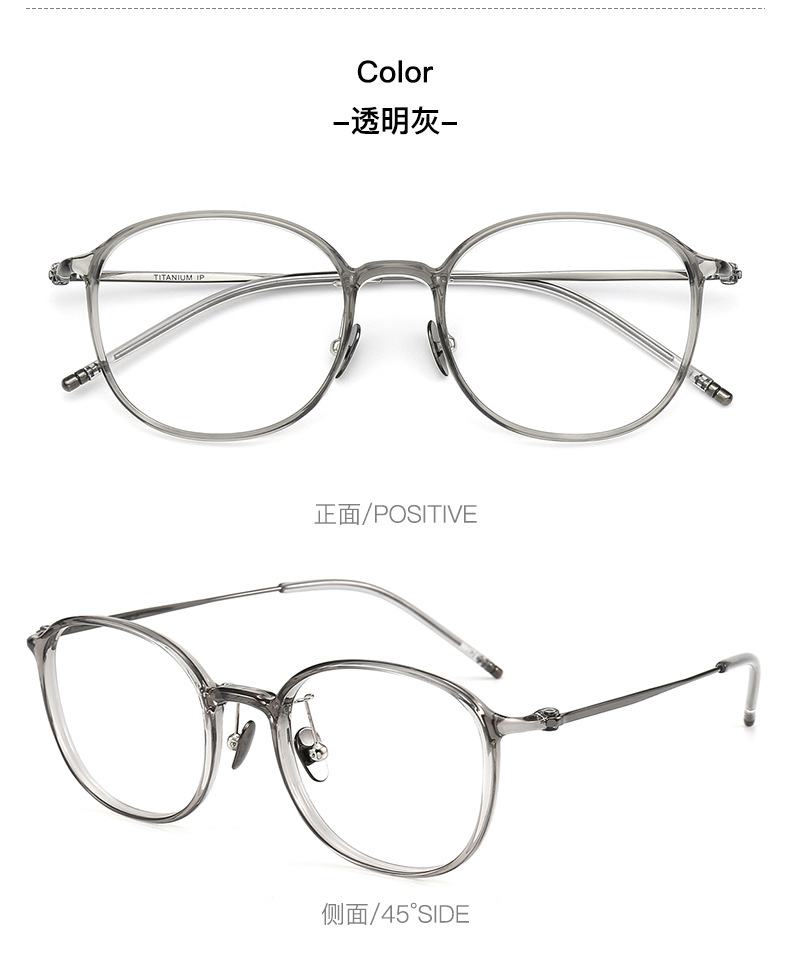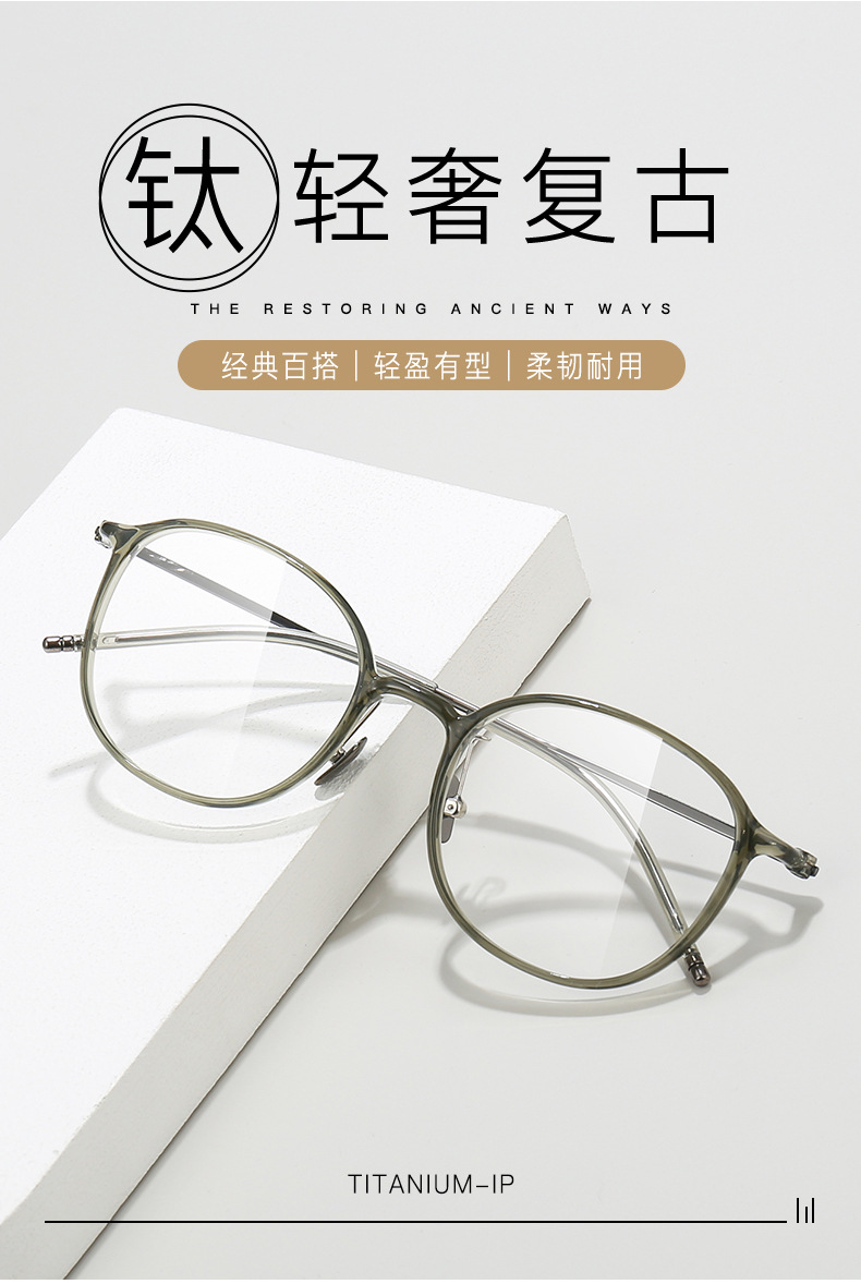 丹陽カリンと同じスタイルのチタンフレーム、スクエア&ラウンドフレーム、TR90純チタン近視メガネフレーム、女性用、ノーメイクでもOK、度付き対応 9113