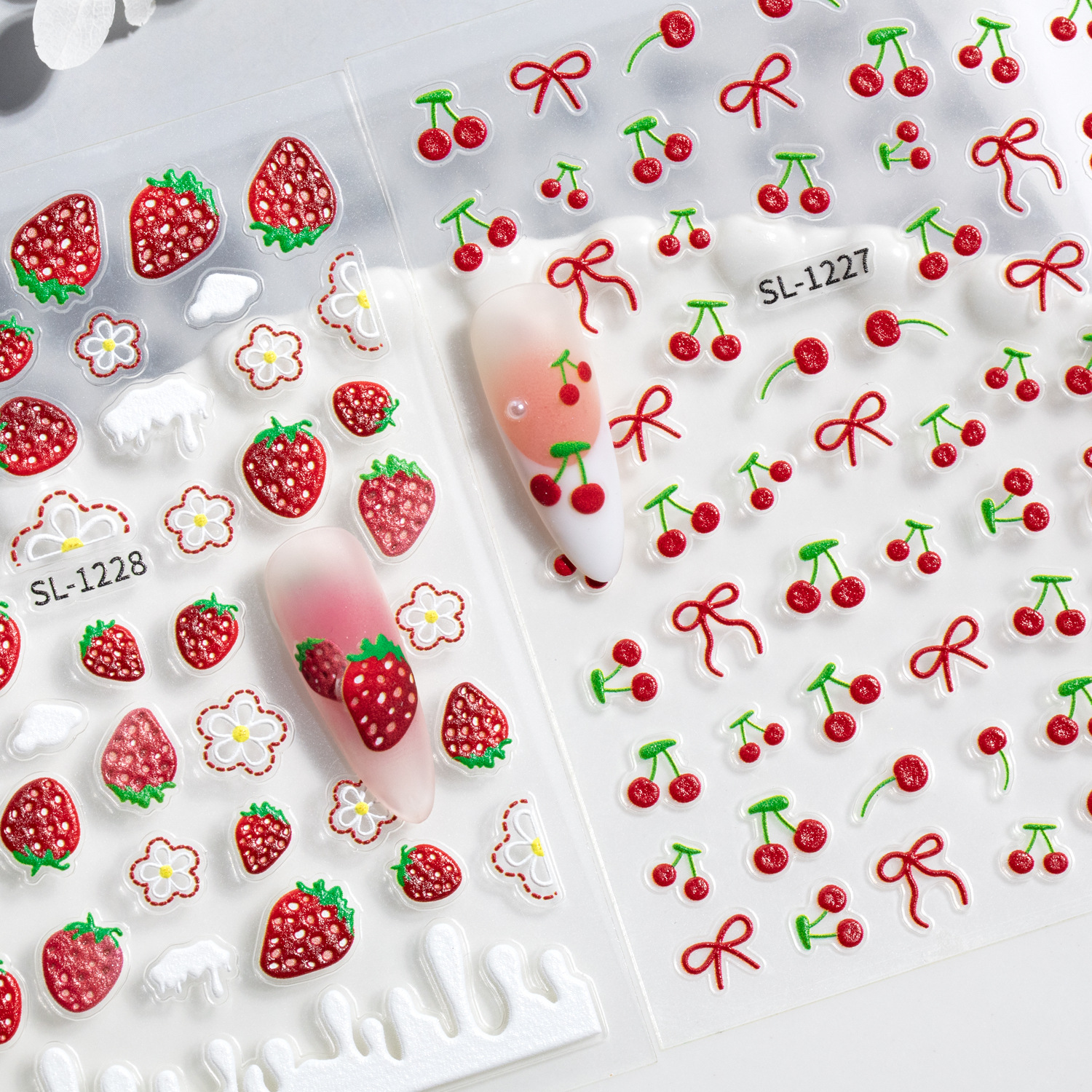 甜美草莓樱桃美甲贴纸5D浮雕立体小清新水果diy指甲贴纸饰品 SL款