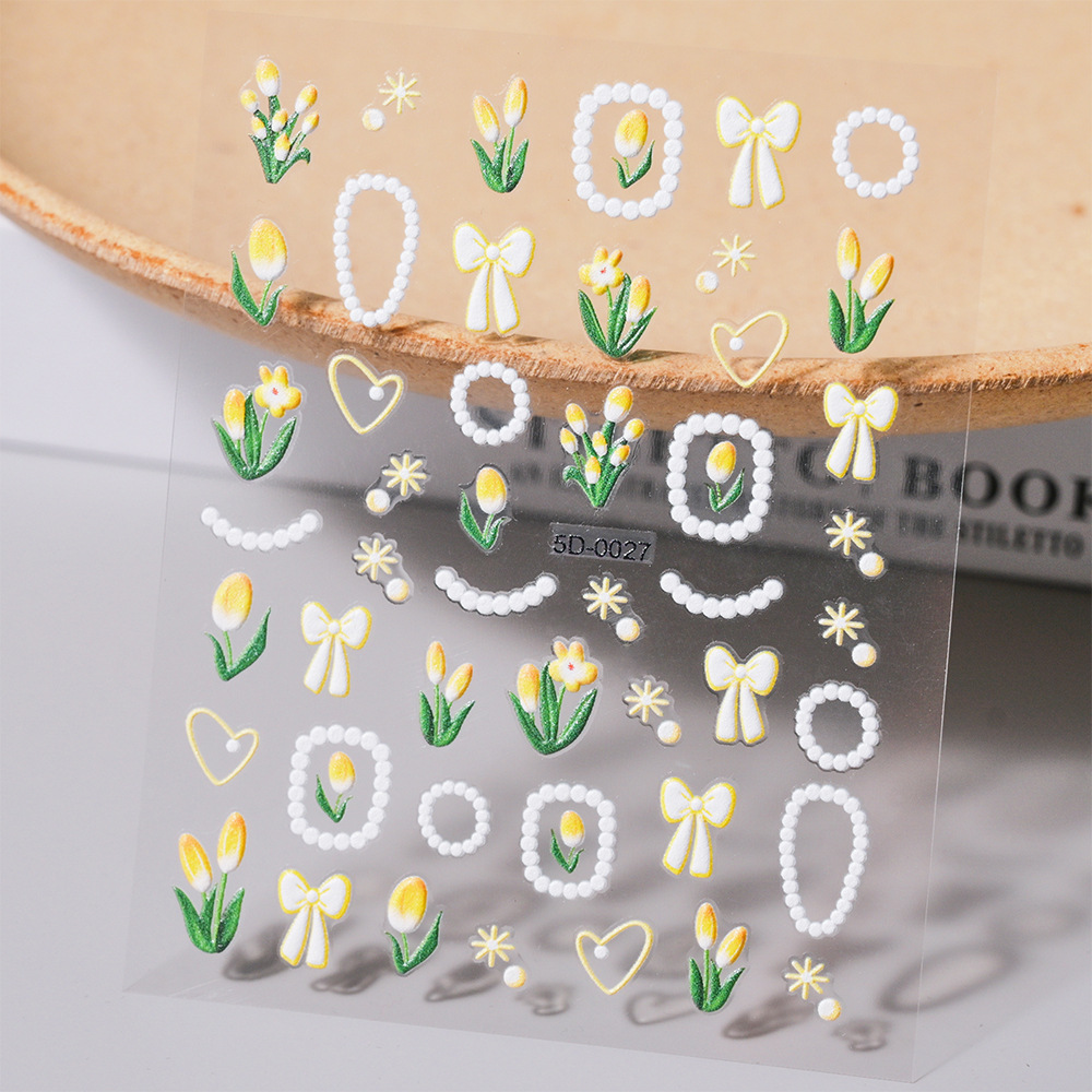 チューリップレリーフ立体ネイルシール小清新甘美花少女淡雅風5Dレリーフ爪シール