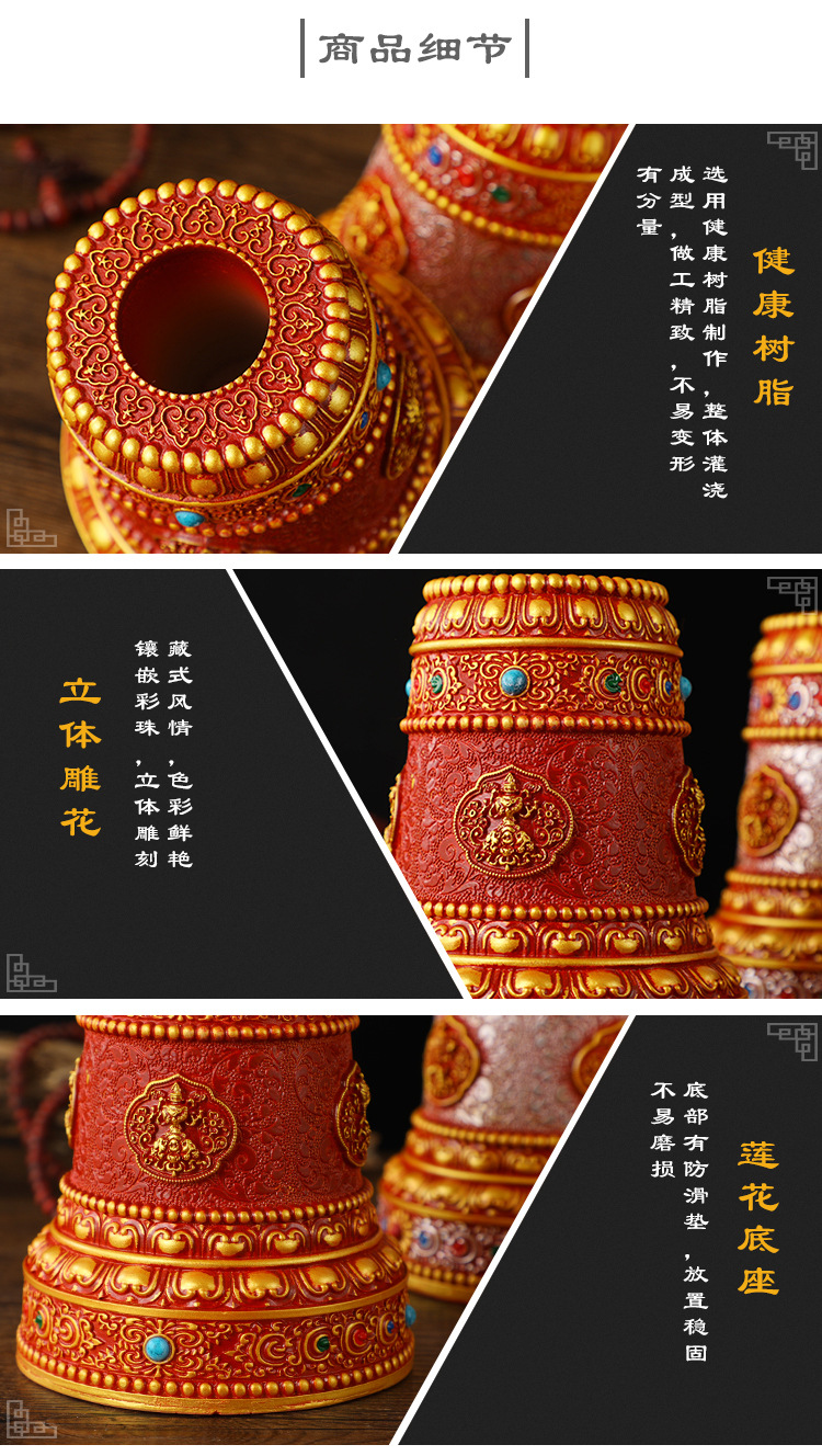樹脂手回し台座蓮花円形底八吉祥浮き彫り家庭用仏財神幡台座置物家庭用