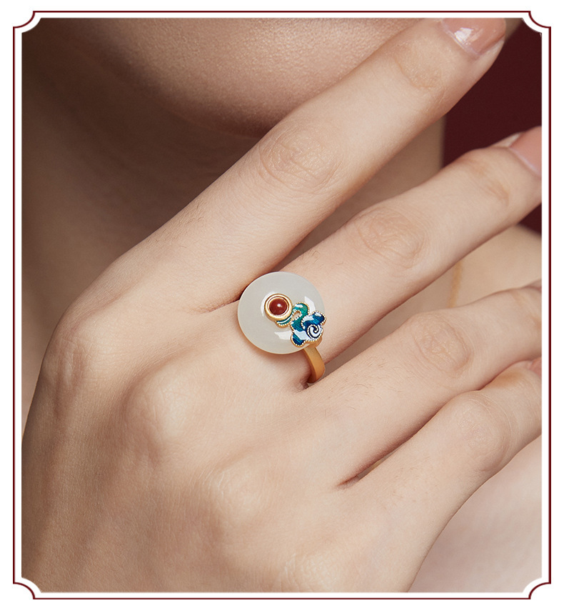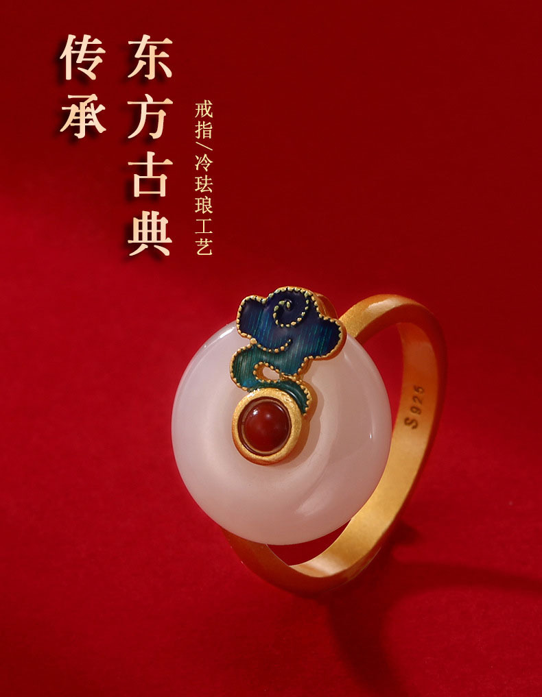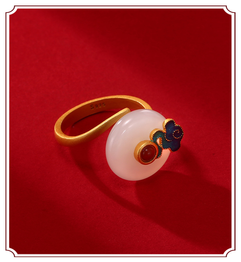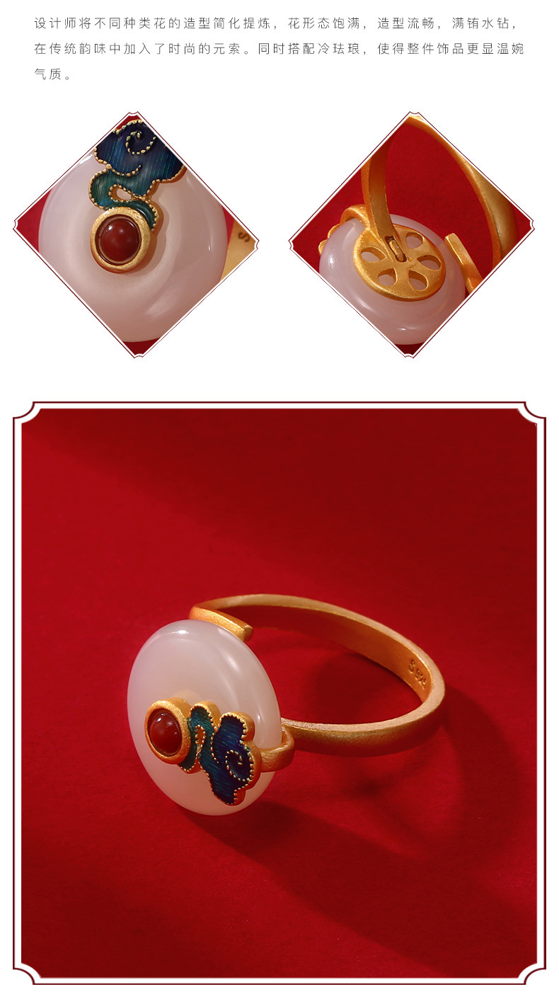 925純銀中国風祥雲指輪をメッキした女性の小衆は復古風と田玉の口を開いてファッションをやめた