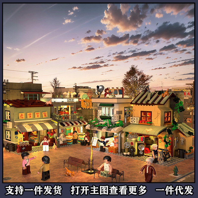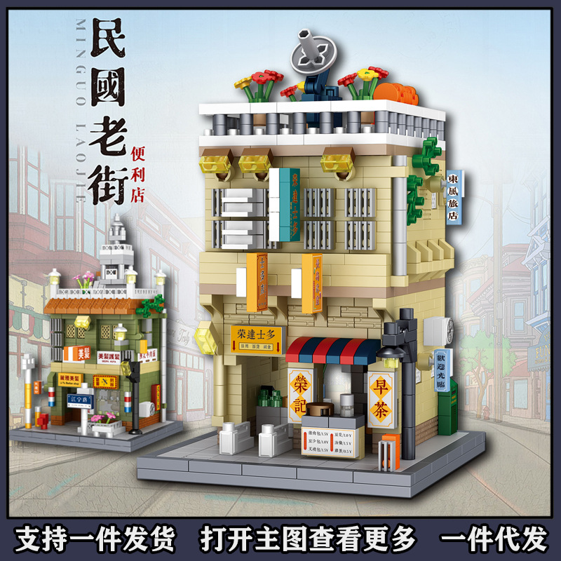 国境を越えた民国老街街景積み木都市商店街模型少年マイクロ粒子入り玩具プレゼント8287