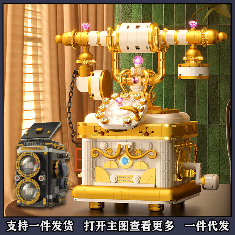 レトロ積み木カメラ模型レトロ電話機創意組み合わせ玩具デスクトップ置物プレゼントクロスボーダー662040
